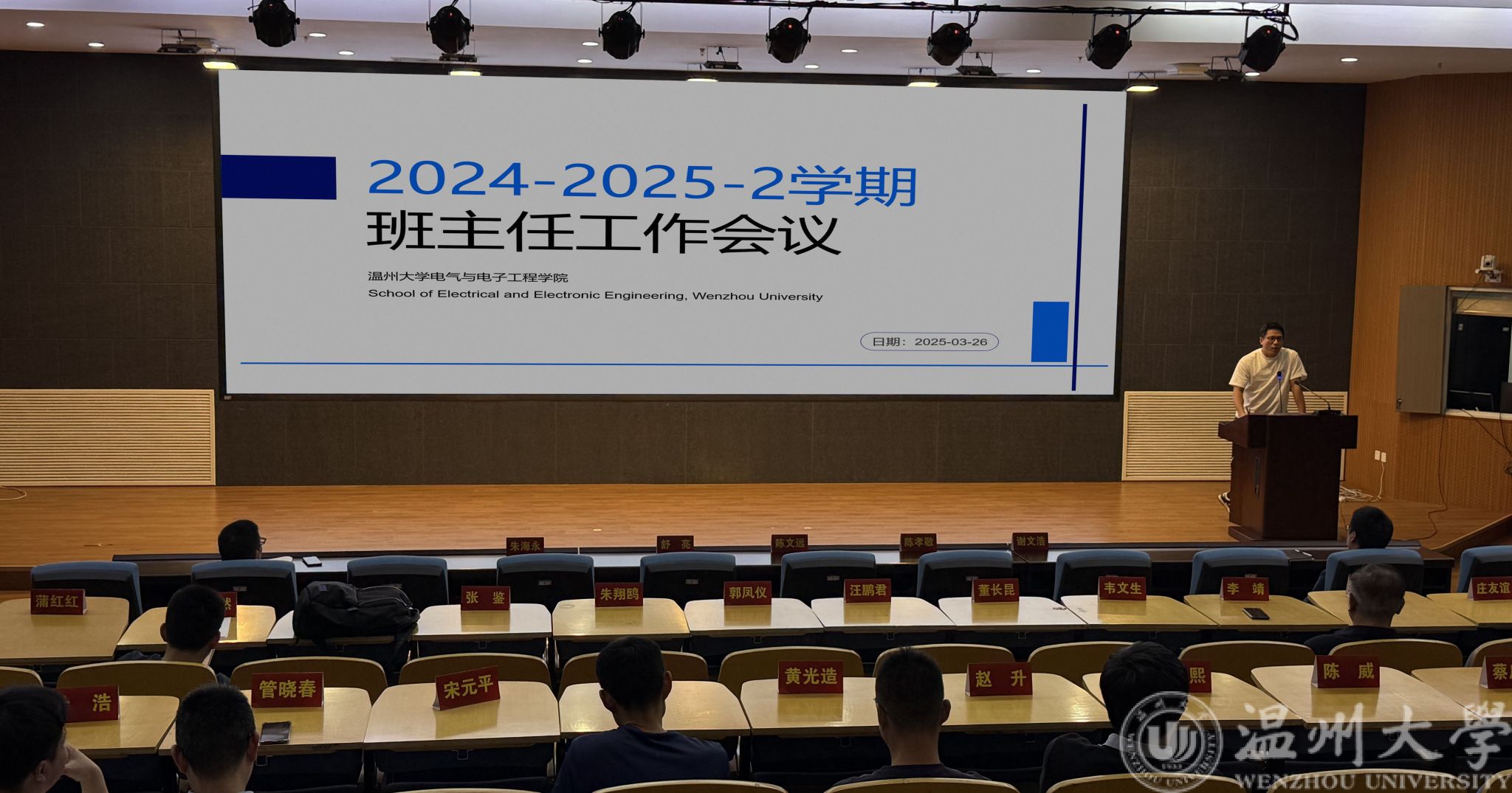 3月26日下午,黑料网 在岩松堂步青厅成功召 2024-2025-2学期班主任工作会议。学院全体本科生、研究生班主任齐聚一堂,学院党委副书记翁浩出席本次会议,会议由学工办主任廖晓安主持。