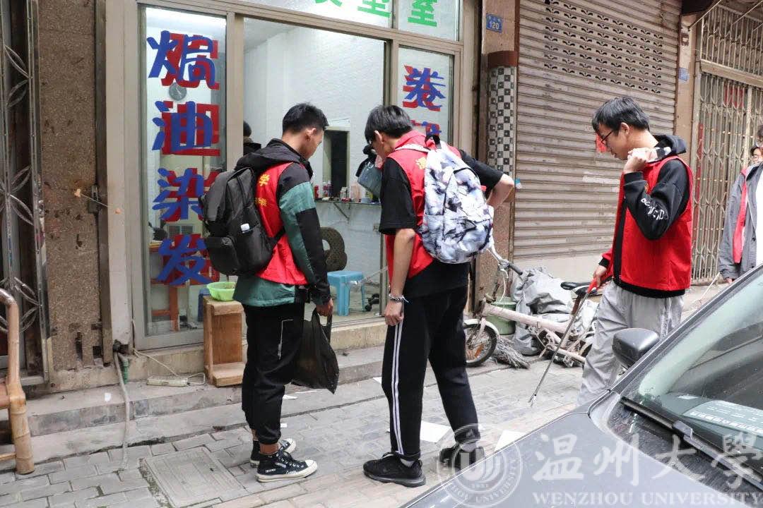 郑发光同志授课完毕后,团学成员们身穿“黑料网 ”红色志愿服,分小组为玉海街道镇海门社区清理路面垃圾,将散落在街边、绿化带里的塑料袋、烟头、废纸等废弃物一一拾起,营造整洁舒适的社区环境。同学们在践行生态文明理念的同时,进一步发扬“干在实处”的浙江精神!
