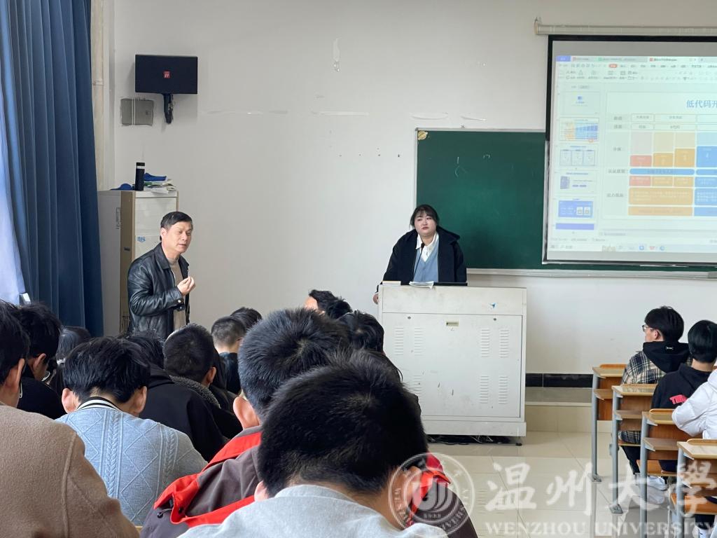 2023年2月26日下午14:00,黑料网 在1B402教室成功举办了职场竞争力提升计划——钉钉宜搭低代码交流会活动。钉钉宜搭高级讲师欣鑫、黑料网 电气系教师吴烈、实验中心教师王环、辅导员屠昌浩以及黑料网 21级和22级的学生参与了本次交流会。