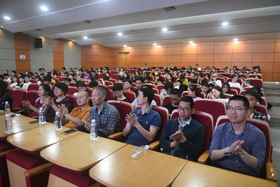 图为讲座现场师生们聆听报告