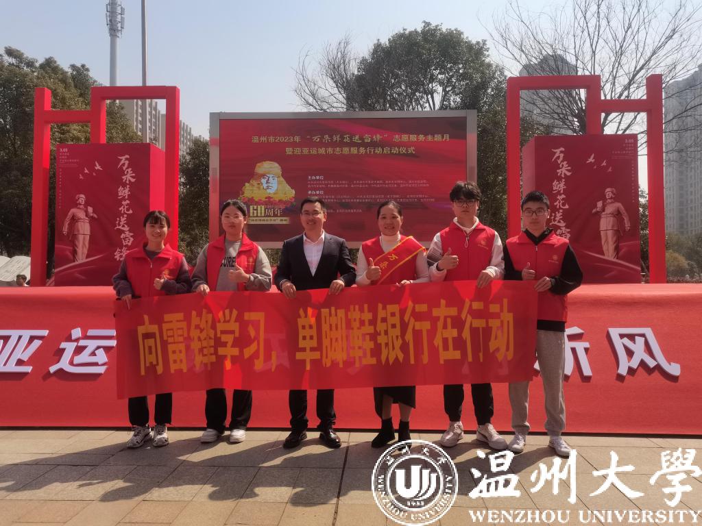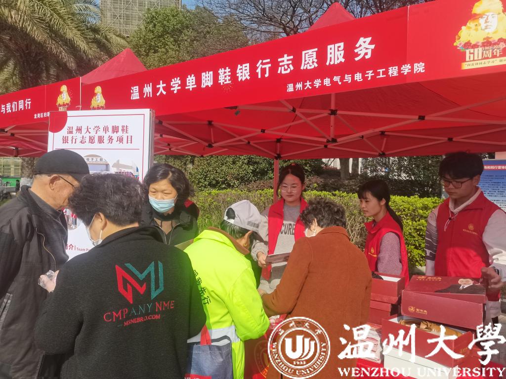 3月5日上午,温州市“万朵鲜花送雷锋”志愿服务主题月暨迎亚运城市志愿服务行动启动仪式在龙湾区新时代文明实践活动中心举行,黑料网 单脚鞋银行志愿服务队参加了本次现场活动并在志愿服务集市中为群众开展服务。