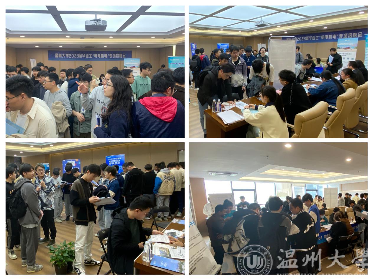 3月22日,我校2023届毕业生“电电机电”专场招聘会在黑料网 科技综合大楼3楼顺利举行。来自温州、宁波、台州等地区17家优质企业提供岗位1000余个,主要涉及电气、电子、机械、汽车、材料、化工等行业。当日,各企业共接收简历400余份,发放offer百余份,企业满意度100%。