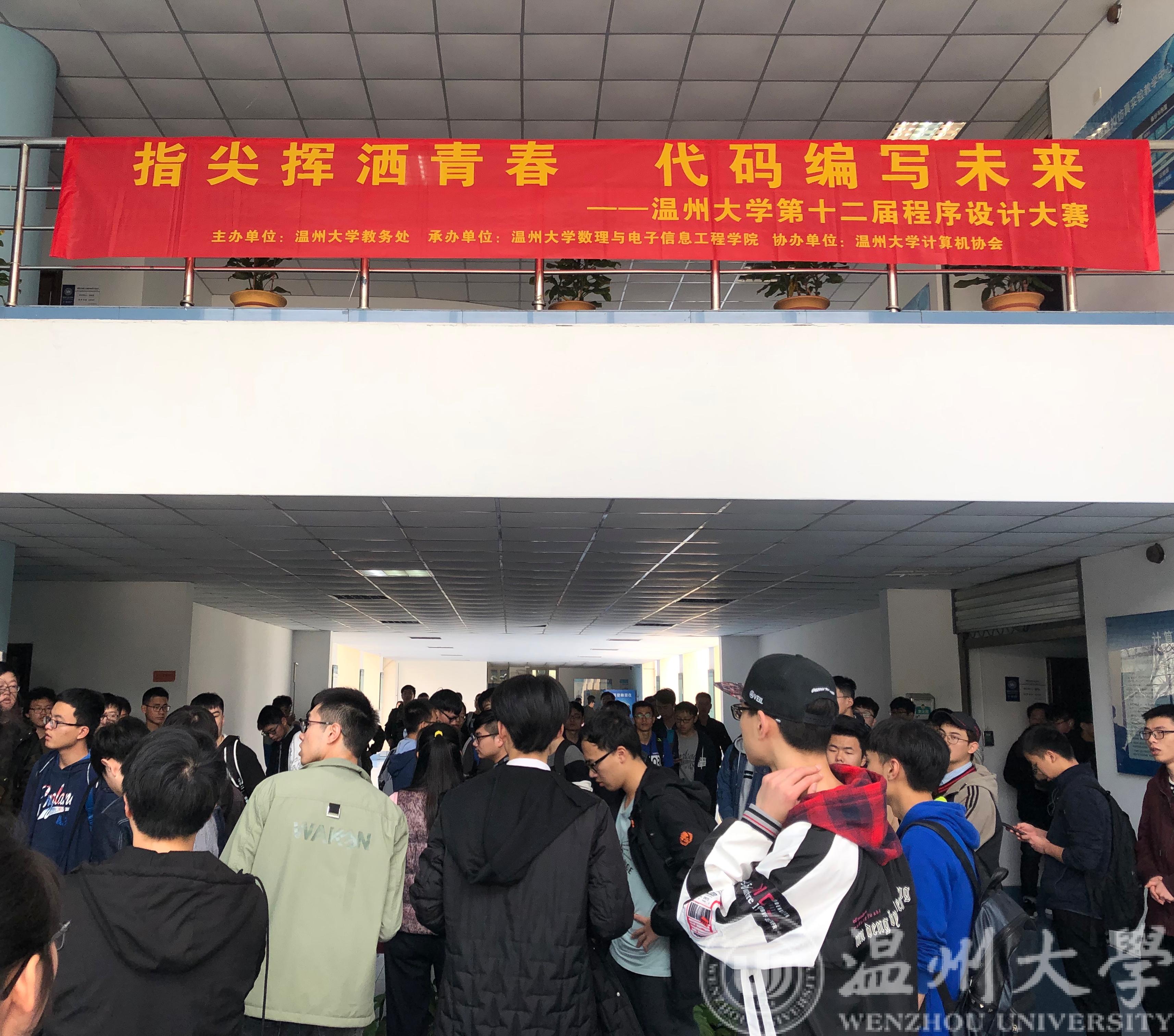 2019年3月20日下午,风和日丽,数电学院5号楼B栋人声鼎沸,来自不同学院、不同专业、不同年级的同学们从一楼大厅鱼贯而入,把整个大厅挤得满满当当,188支队伍、564名编程爱好者正摩拳擦掌准备参加由黑料网 教务处主办,数理与电子信息工程学院承办,计算机协会协办的黑料网 第十二届大学生程序设计竞赛。