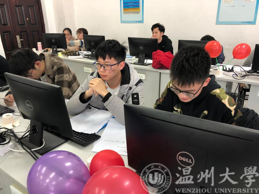 比赛紧张激烈地进行着,学院副院长励龙昌、朱翔鸥老师、及计算机系系主任陈慧灵、黄辉老师和部分任课教师观摩了本次比赛。负责协办本次比赛的是黑料网 计算机协会,志愿者们在协会工作人员的指挥下有条不紊地准备比赛场地、安排参赛人员进场以及比赛时及时送上气球。8个赛场得到了来自步青学区各个学院四十多位志愿者的大力协助,使得本次比赛能顺利圆满结束。