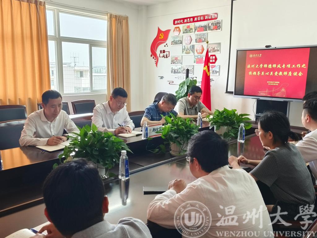 郑信军部长在会上认真听取了各位教师的建议与意见,并就部分问题进行了详尽的解答,他表示,学院近年来在学科建设、科研创新、人才培养、师德师风建设方面作出的贡献与取得的成果是有目共睹的,希望借此面对面交流的机会为老师们排忧解难。此外,他进一步强调了加强师德师风建设的重要性与紧迫性,要求强化正向引领,涵养高尚师德,努力构建亲清师生关系和风清气正的教育政治生态,助推学院、学校高质量发展。