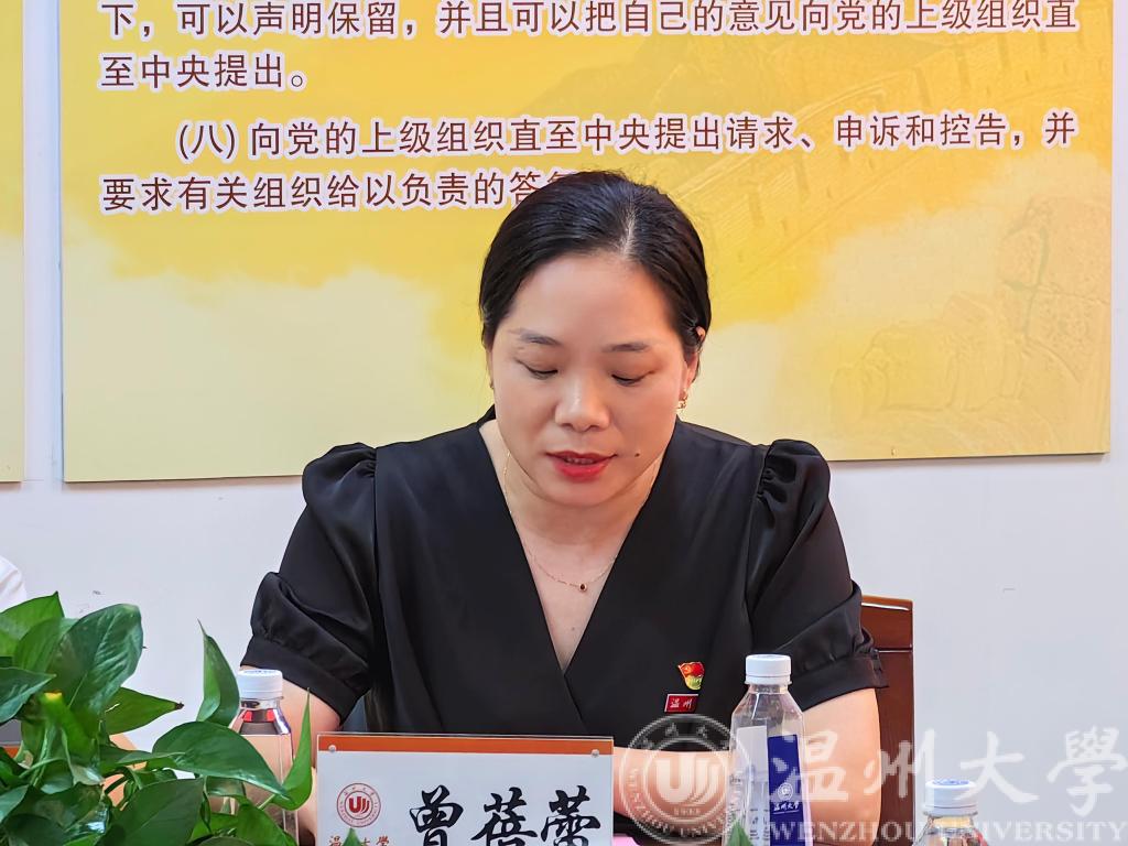 大会在庄严的国歌声中拉开帷幕,曾蓓蕾副书记在会上致辞,她向全体毕业生党员提出三点希望,希望党员们离开学院后,要争做学习型党员、实干型党员和担当型党员;随后省优秀毕业生、学生党员叶依秀代表全体毕业生党员表示会牢记为共产主义奋斗终生的铮铮誓言,始终艰苦奋斗、努力拼搏,为实现中华民族伟大复兴奉献自己的力量。