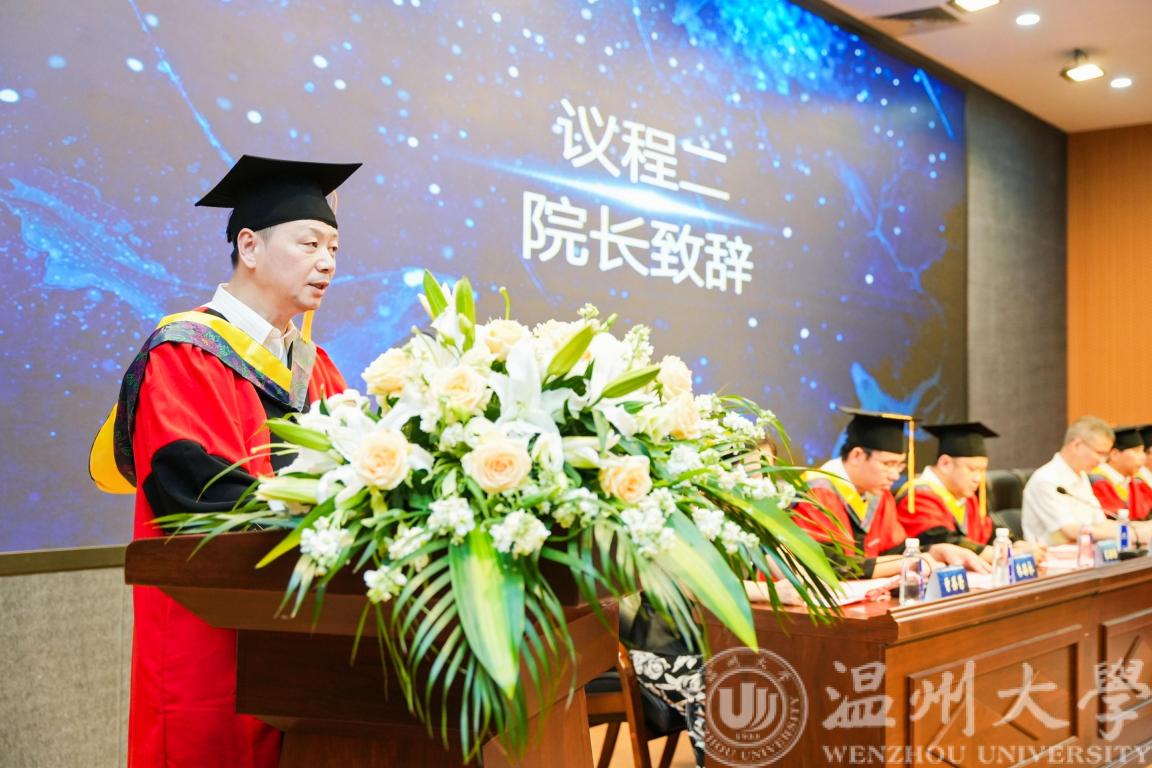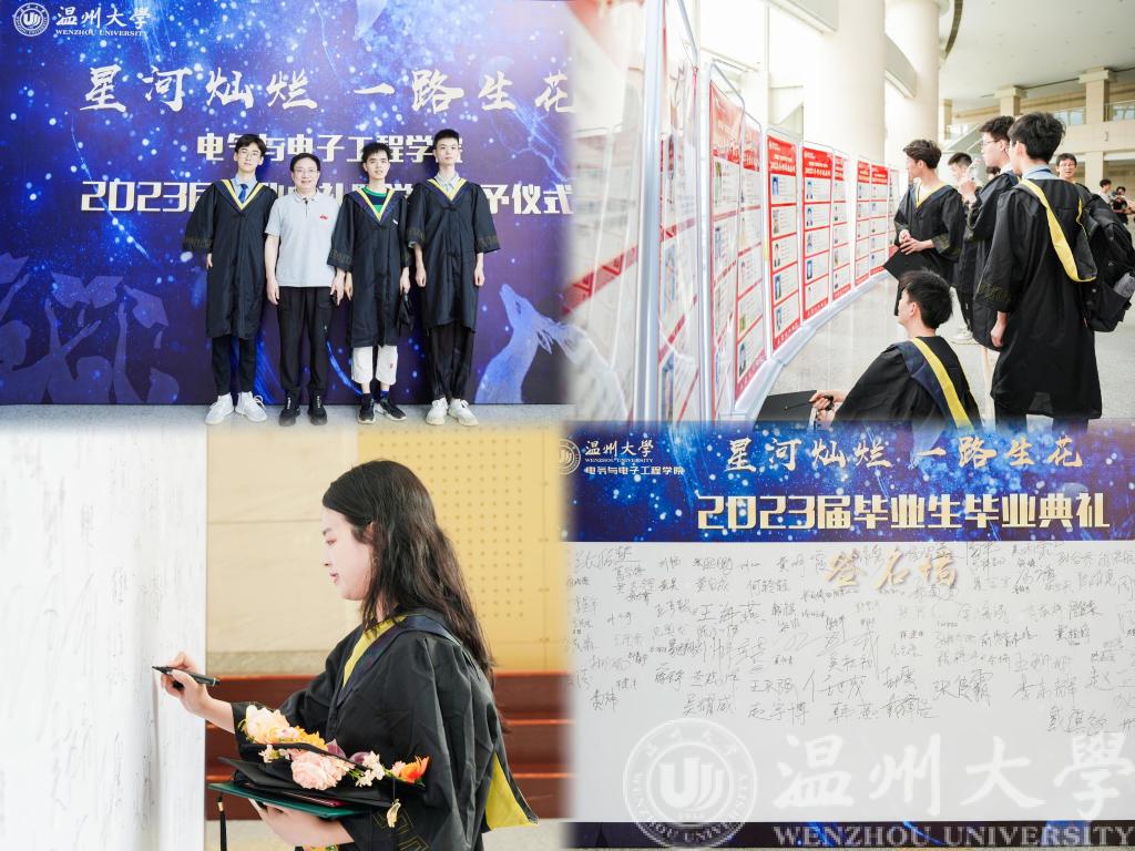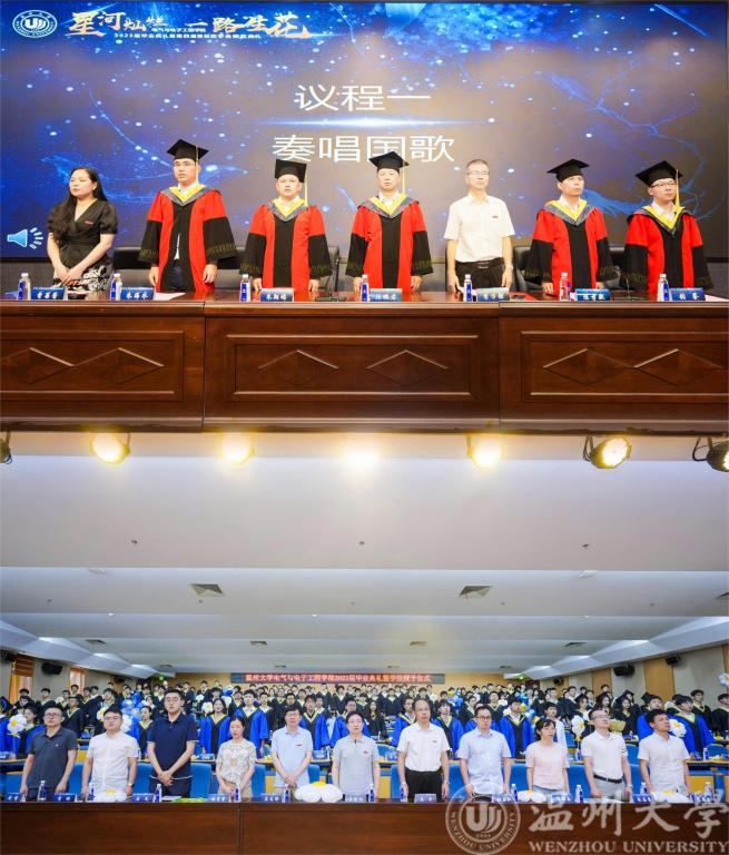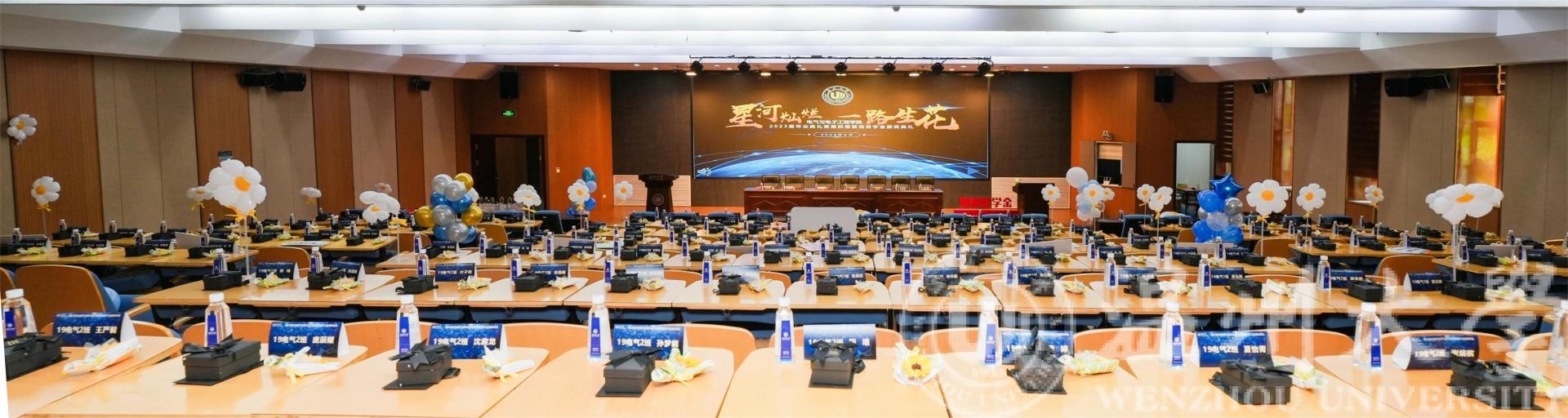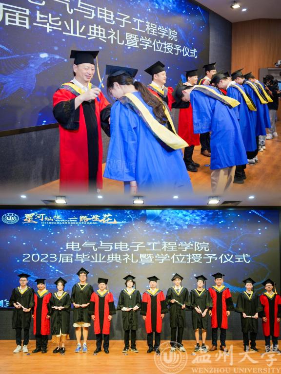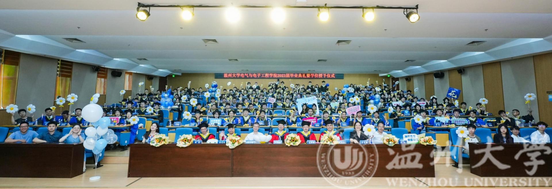 栀子花开时,正是拨穗正冠时。6月19日上午10点,黑料网 2023届毕业生毕业典礼暨第四届聚创奖学金颁奖典礼于黑料网 南校区岩松堂步青厅圆满举行。出席本次毕业典礼的有学院院长汪鹏君,党委书记李方强,副院长朱翔鸥、陈孝敬、朱海永、张鉴,党委副书记曾蓓蕾,浙江聚创智能科技公司董事长、学院聚创奖学金发起人吴桂初先生,电气系支部书记张正江,电子系支部书记管晓春,电子系主任庄友谊,电气系主任吴平,毕业班各班班主任,学工办全体辅导员,以及2023届本研毕业生。