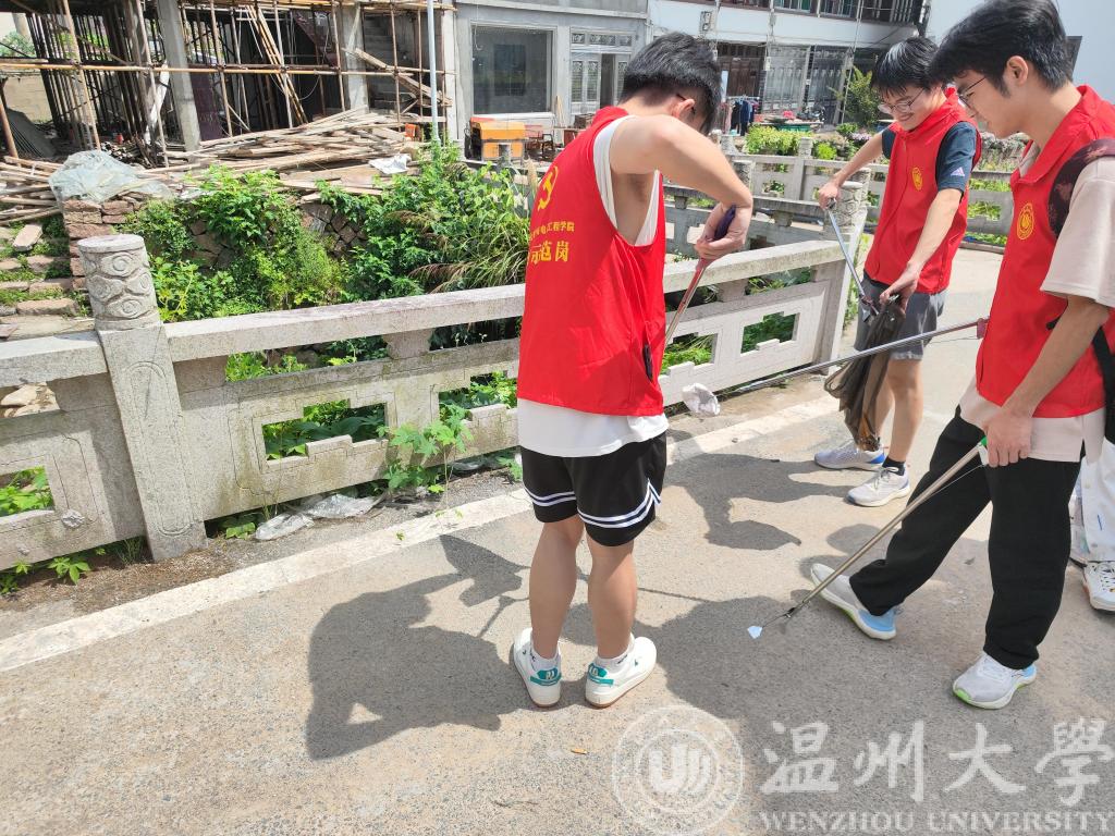 达到铜铃山镇下垟村,教师党员和青年志愿者分成三支队伍。第一支队伍在村庄周围美化环境,下垟村不仅有荷花池塘,更有浙南民俗博物馆。大学生青年志愿者围绕村庄走一圈,在美景与浓厚的文化氛围中清洁卫生,美化环境。为下垟村的美景添上了一笔浓墨的色彩。