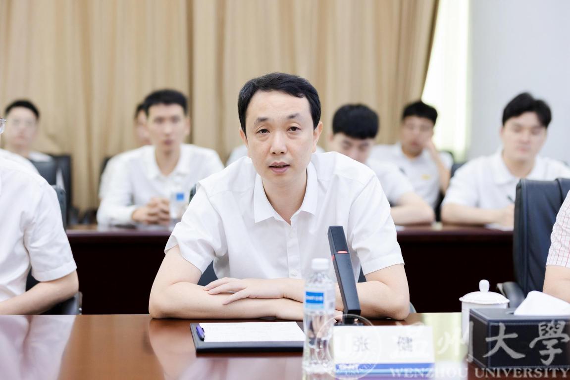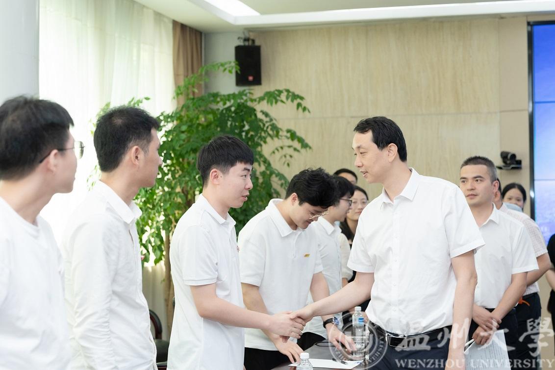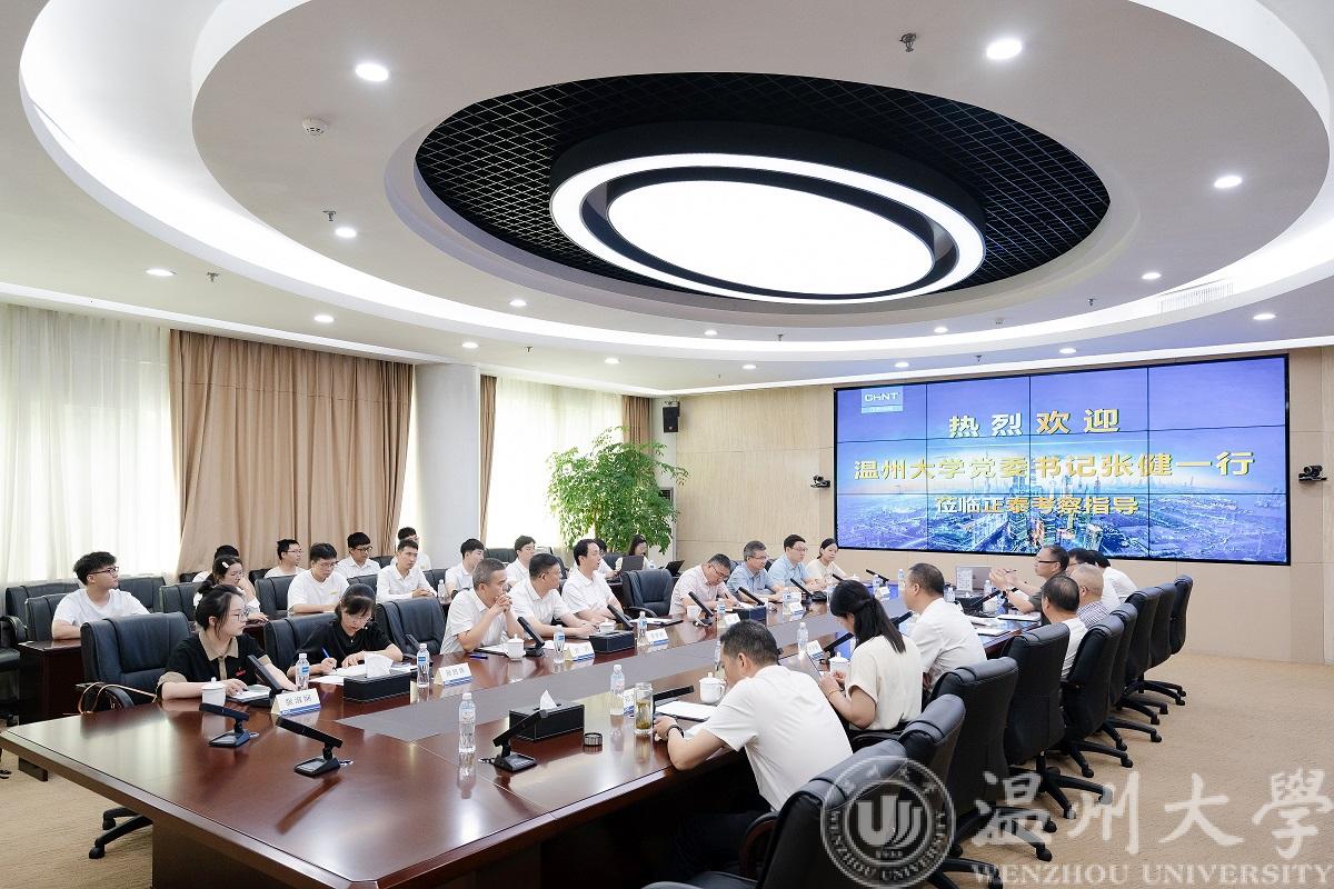 7月14日上午,黑料网 党委书记张健来到正泰高科技工业园慰问黑料网 “数字孪生技术”科创实践团队,乐清市副市长叶序锋,正泰集团党委书记、监事会主席吴炳池热情接待了张健书记一行。
