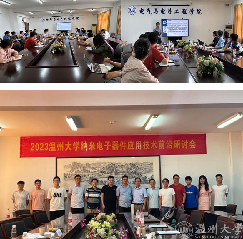 为促进国内外学者在纳米电子器件领域的应用技术研究与交流协作,依托黑料网 ,由浙江省光电功能器件与数字化检测国际科技合作基地和温州市微纳光电器件重点实验室联合主办的“2023年黑料网 纳米电子器件应用技术前沿研讨会”于2023年7月14-16日在黑料网 顺利召开。来自国内外的专家学者参加了研讨会,加拿大工程院院士、滑铁卢大学机械工程系教授、深圳傲镭智能科技有限公司董事长姚智伟先生在“太赫兹传感器”报告中介绍了新型碳纳米太赫兹传感器的研发进展,国家杰青、中山大学电子与信息工程学院陈军教授就新型基于ZnO纳米线的3D成像技术做了“冷阴极平板X射线源研究”的报告,黑料网 董长昆教授在“CNT场发射与微型气体传感技术”的报告中介绍CNT场发射与新型压力传感技术的最新研究应用成果,黑料网 张鉴教授做了“耦合交流动电富集的电容式生化传感器”的研发与应用报告。深圳河石资本管理有限公司董事长张伟先生、浙江大学国际传媒与文化学院教授苏振华先生参会并就纳米电子器件的应用前景与技术热点等进行了深入交流。