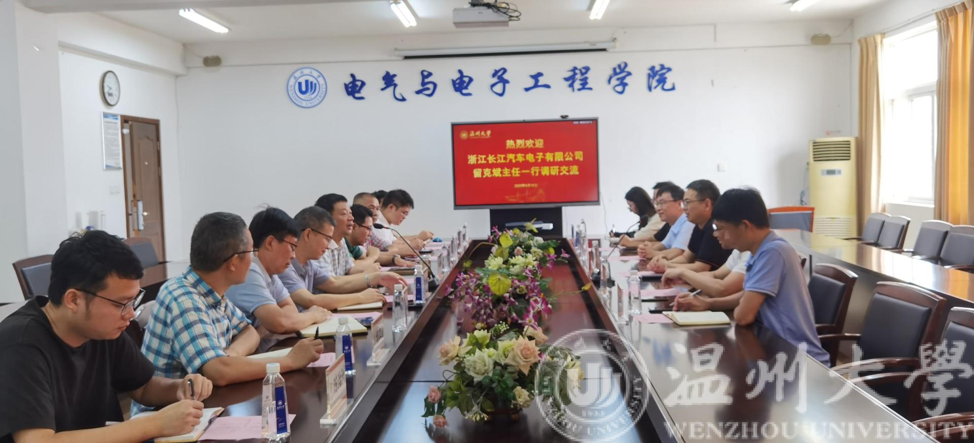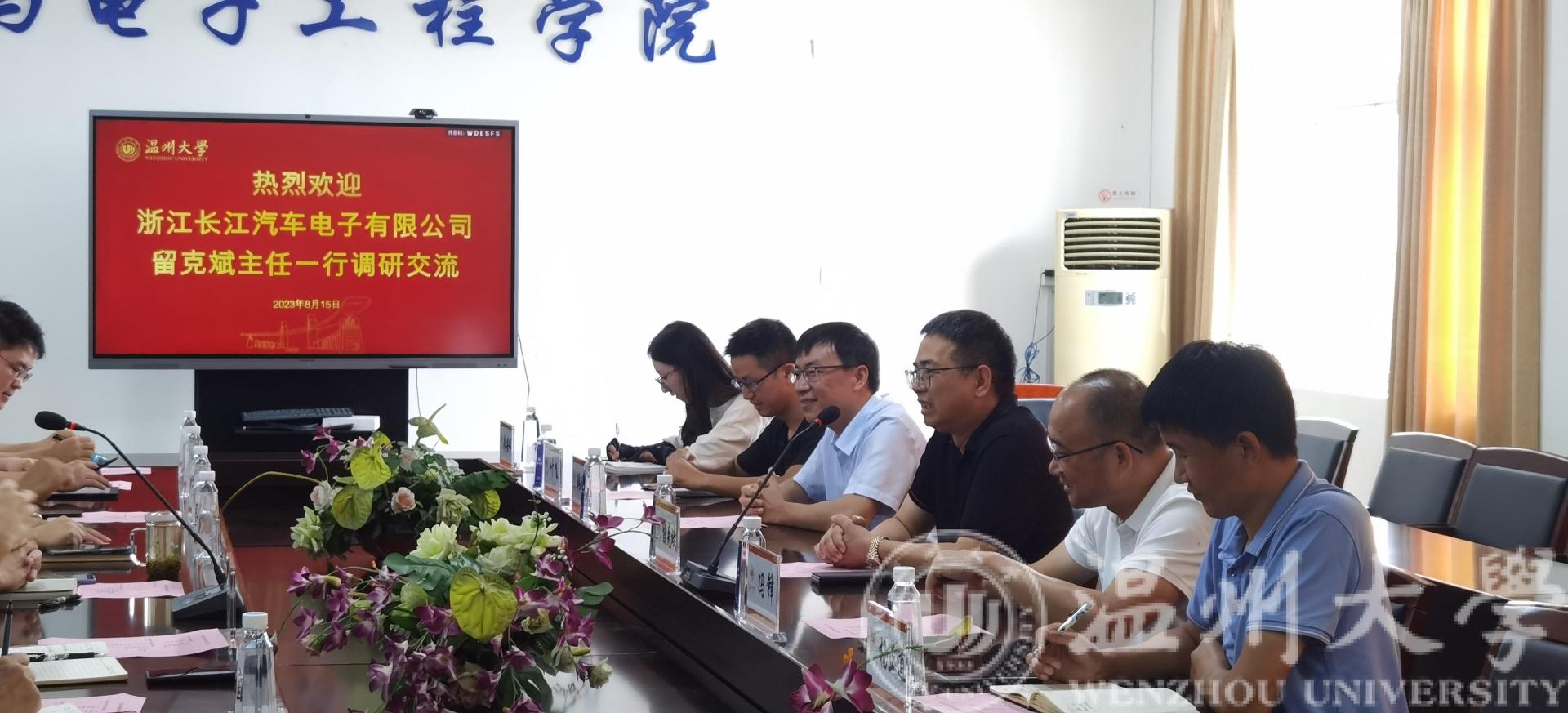 8月15日上午,浙江长江汽车电子有限公司研发部主任留客斌、人力资源总监冯锋等一行来黑料网 访谈交流校企合作。黑料网 汪鹏君院长、李方强书记及骨干教师参加了交流会。