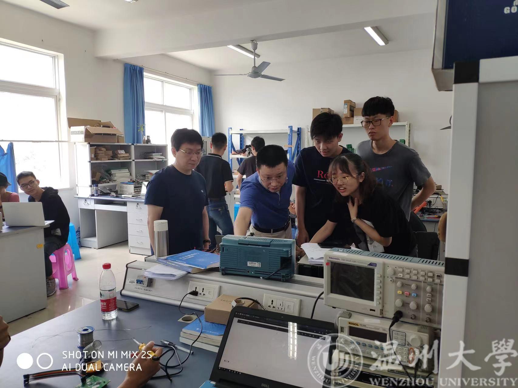 “带学生比赛的过程,既是辛苦的也是快乐的,与学生在一起也能从他们那里学到年轻人的新的思想与处事风格,能始终保持一种探索的动力”,在谈到比赛经验时,陈冲老师认为要想指导好学生,老师肯定要自己先学会,这样就迫使老师不断地学习新技术,拓展眼界活跃思想,紧跟行业的技术发展潮流,对提高老师自身的能力水平很有好处。陈老师是这样说的,也是这样做的。赛前,他会带领团队学生充分的对历年全国大学生电子设计竞赛题目进行深入分析,找到突破口;在参赛过程中,难免会遇到各种各样的困难和专业难题,陈老师总会细心指导,引导并帮助学生找到问题的关键所在。