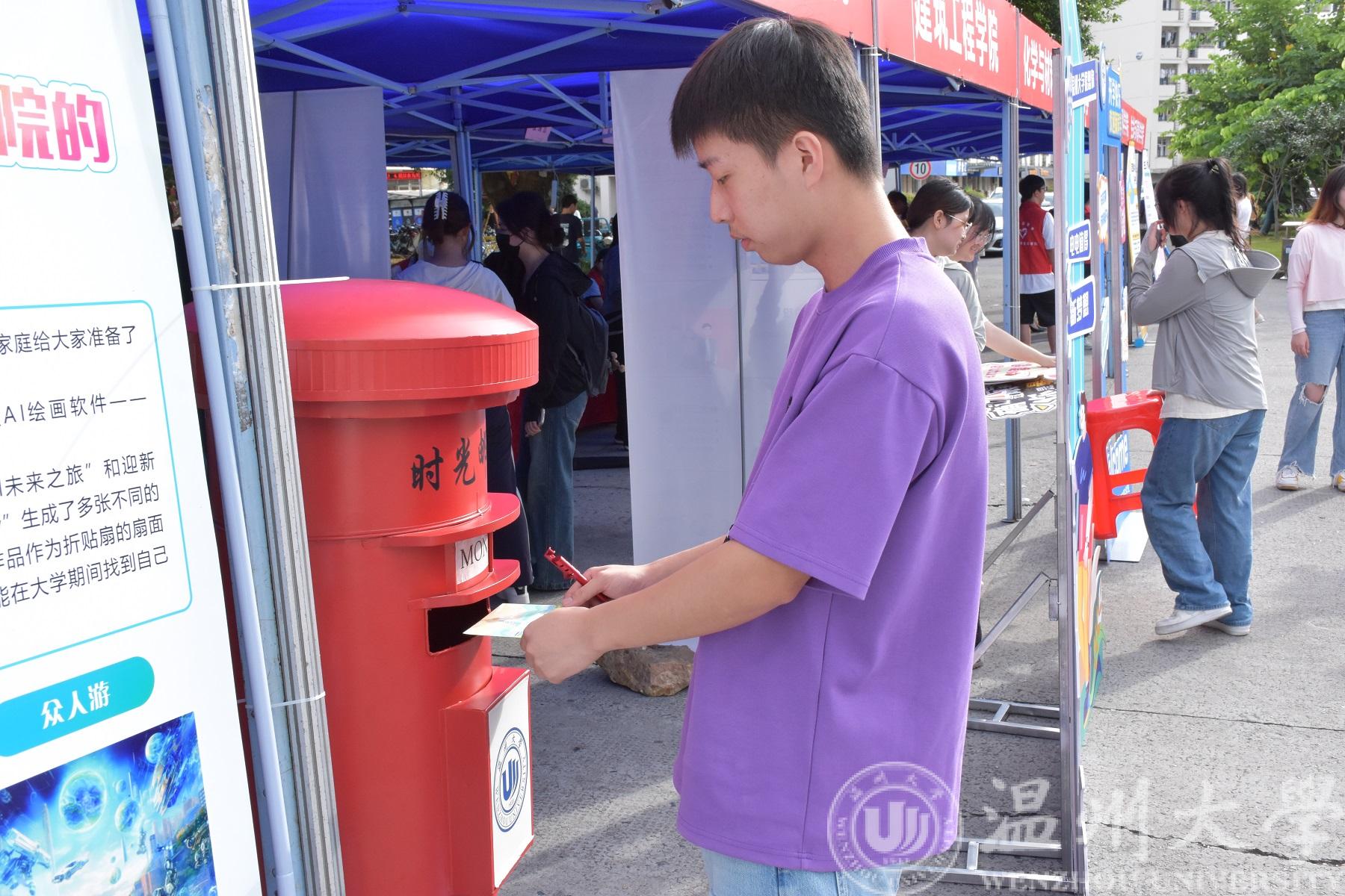 穿过“充电赛道”,新生们可以从科技之光“芯”青年愿望墙上取下温大手绘明星片,写上对自己未来的寄语,签下自己的名字,投递到“时光邮筒”里。每一段旅程,都是人生中最特别的存在。十几年的寒窗苦读,终于迎来了梦寐以求的大学时光,相信每位新生都对接下来的大学生活无限憧憬,对未来的自己有无限期许。