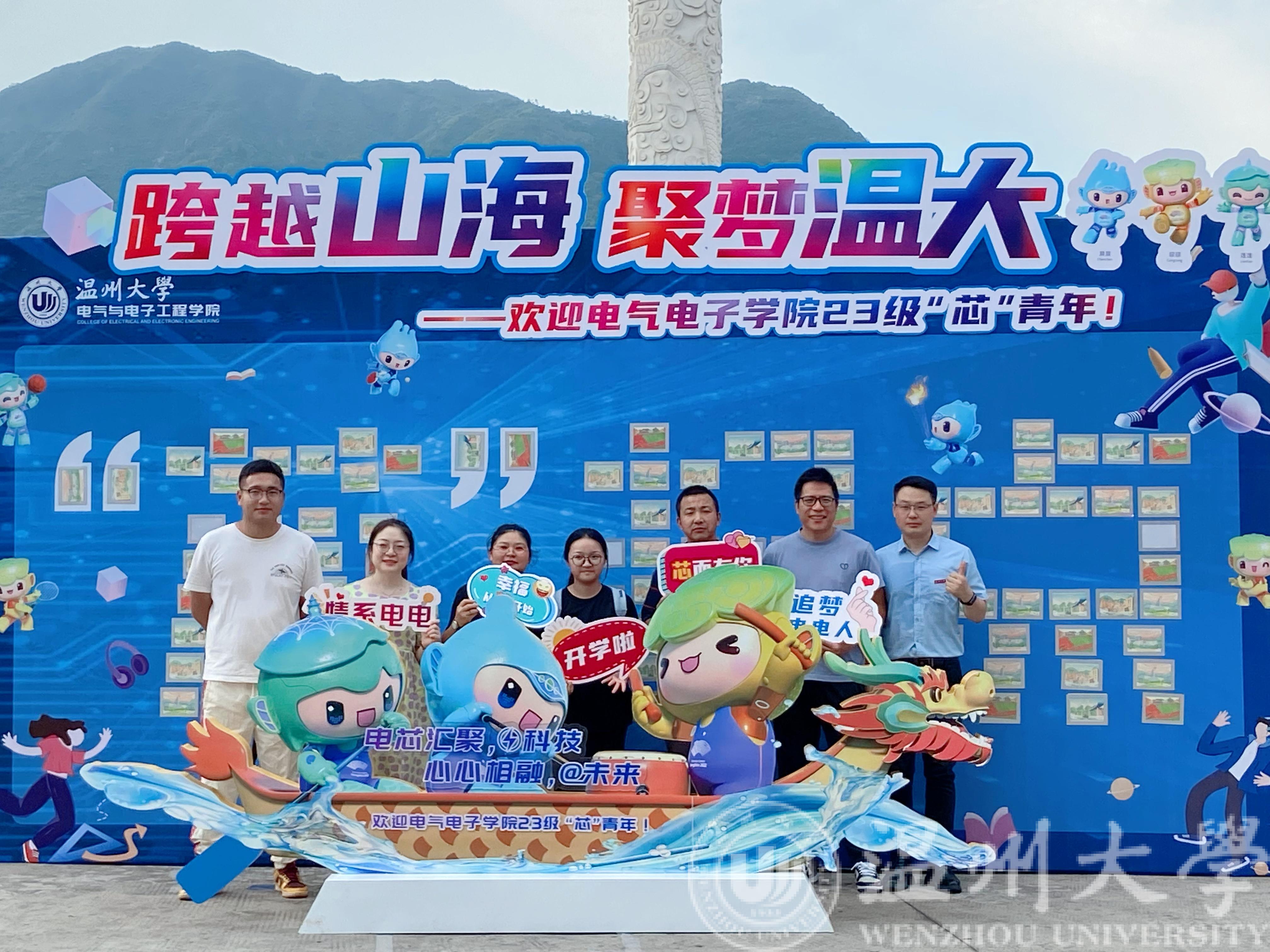 充满科技风的“充电赛道”,集芯片元素和电路图组成的科技之光“芯”青年愿望墙,彰显了电气电子学院电气工程及其自动化、电子科学技术和集成电路的专业特色,与学院培养新时代科技创新人才的方向不谋而合;而特别定制的龙舟造型,呼应了温州作为第19届杭州亚运会龙舟项目比赛主场地,展示了温州中国龙舟文化之乡的深厚底蕴。昂首向前的龙舟上,载着杭州亚运会的吉祥物琮琮、宸宸、莲莲,寓意着青年学子朝气勃勃、精神焕发。