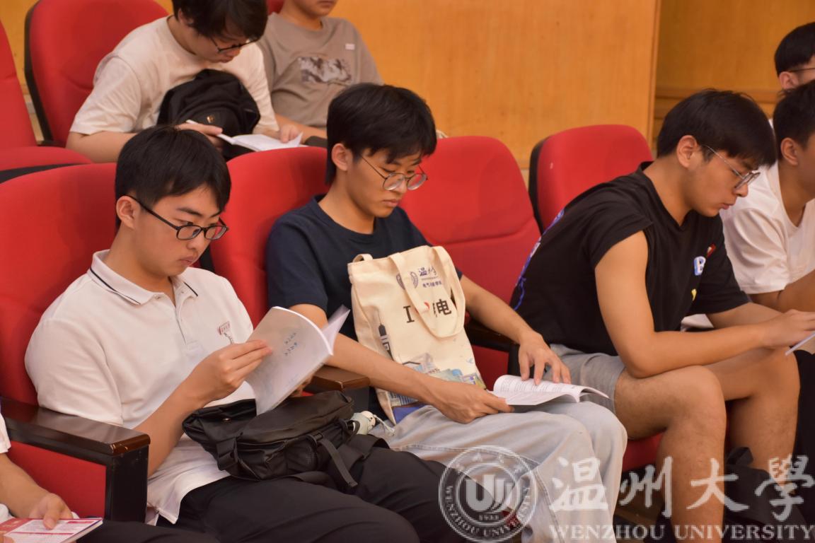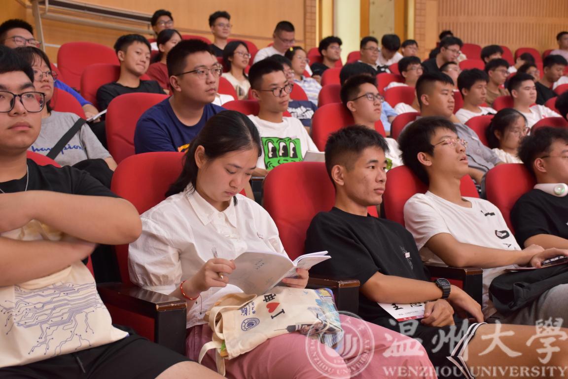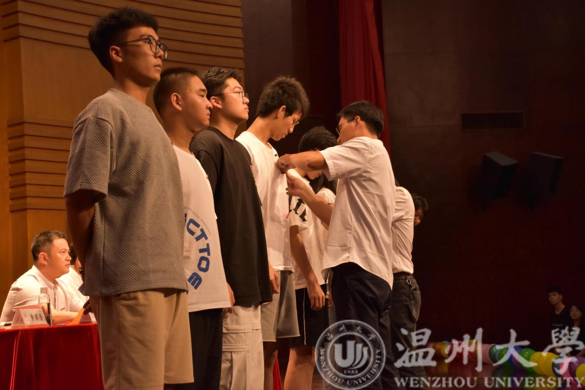 会上举行了佩戴校徽仪式,戴上校徽,就是有了一个共同的名字——温大人,正式开启崭新的大学生活,成为一位光荣的温大学子。随后,全体起立,齐唱校歌。“东海水,雁荡山,我温大精神,浩浩荡荡!”学习校歌,感受校歌内涵,感受温大“求学问是,敢为人先”的力量。
