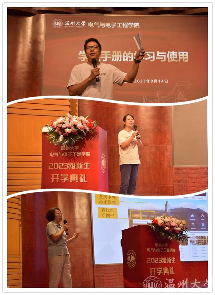 下午13:30,开学典礼正式开始。学院党委副书记曾蓓蕾首先表达了对各位新温大学子加入学院的激动和开学典礼如期举行的欣喜。随后向23级新同学们分别介绍了出席的学院领导、老师以及学生代表们,并欢迎他们的到来。