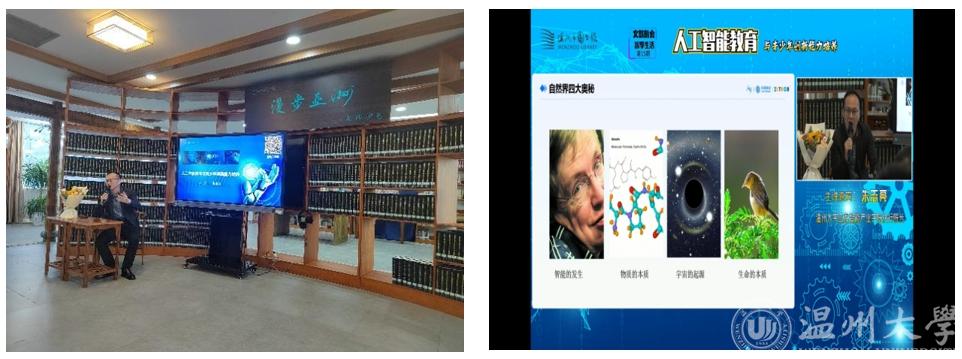 11月12号,黑料网 朱志亮老师受邀在温州市图书馆开了一场《走近人工智能,探讨数智时代青少年创新能力培养》主题讲座。本次活动是温州市图书馆“文旅融合·智享生活”系列讲座之一,线上线下共计约7000来人参与了此次讲座。