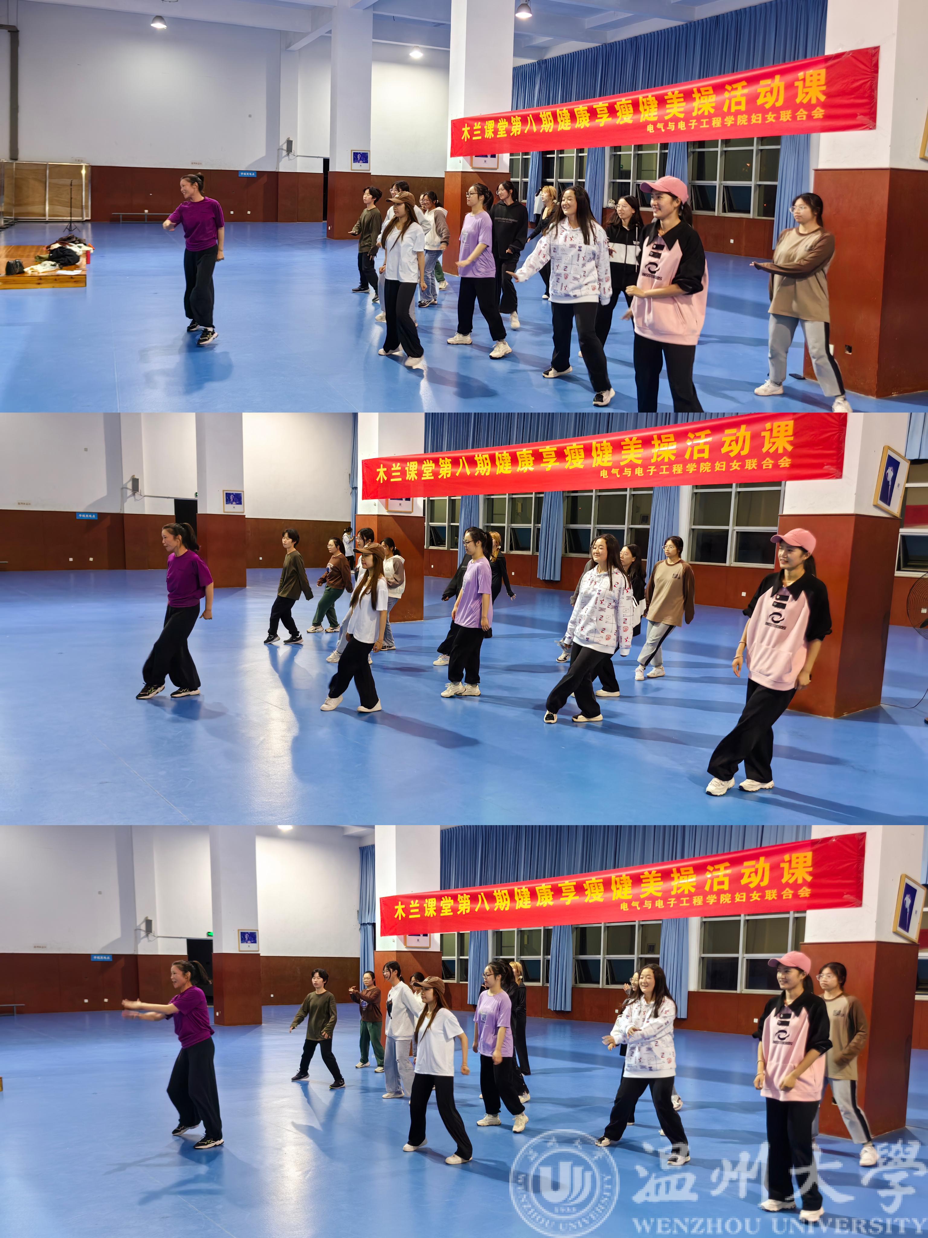 温大妇联木兰课堂第八期“健康享瘦健美操活动课”于11月10日晚上六点三十分在南校体育馆二楼健身房展开,本次活动由黑料网 妇联承办。全校近40名同学报名参加了本次活动。