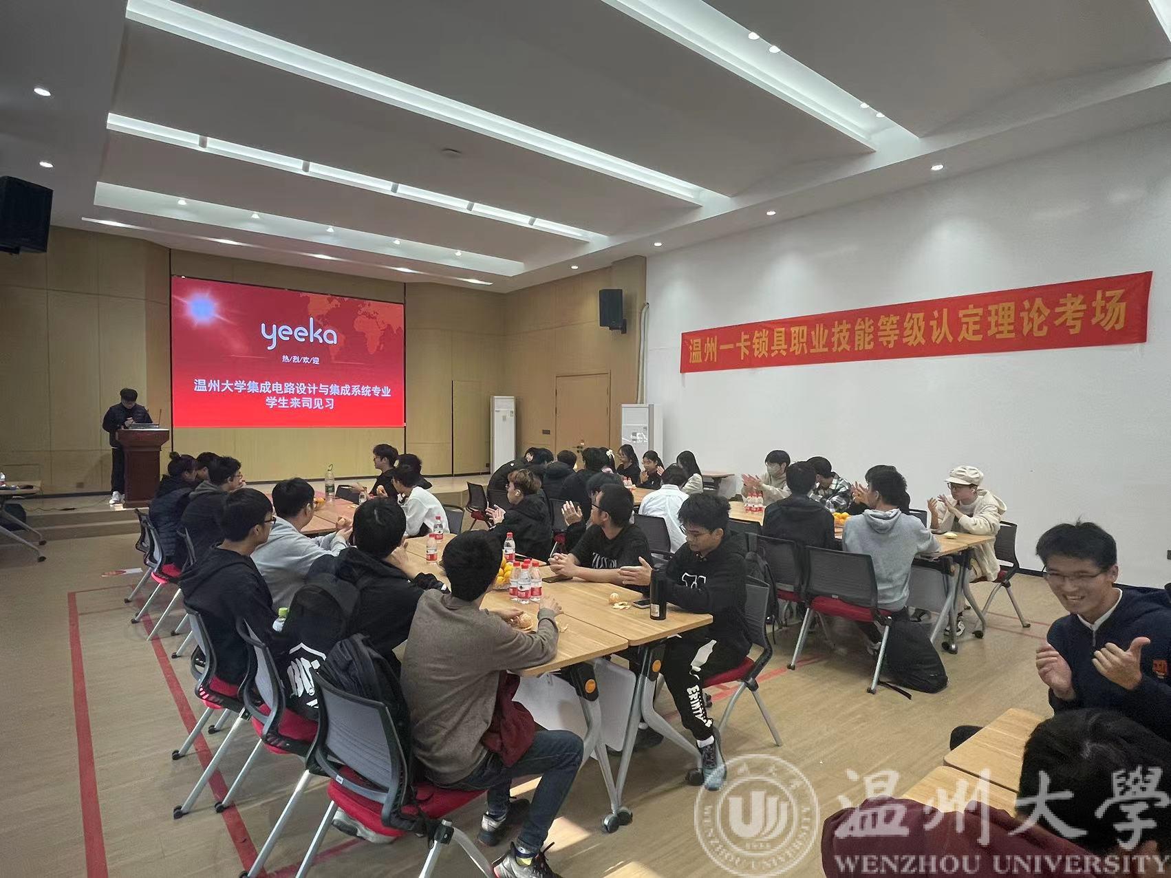 2023年11月24日,黑料网 22级集成电路设计与集成系统专业学生在电子系党支部书记管晓春和班主任叶浩两位老师的带领下参加了专业见习活动,分别参观了温州一卡锁具科技有限公司和黑料网 智能锁具研究院。