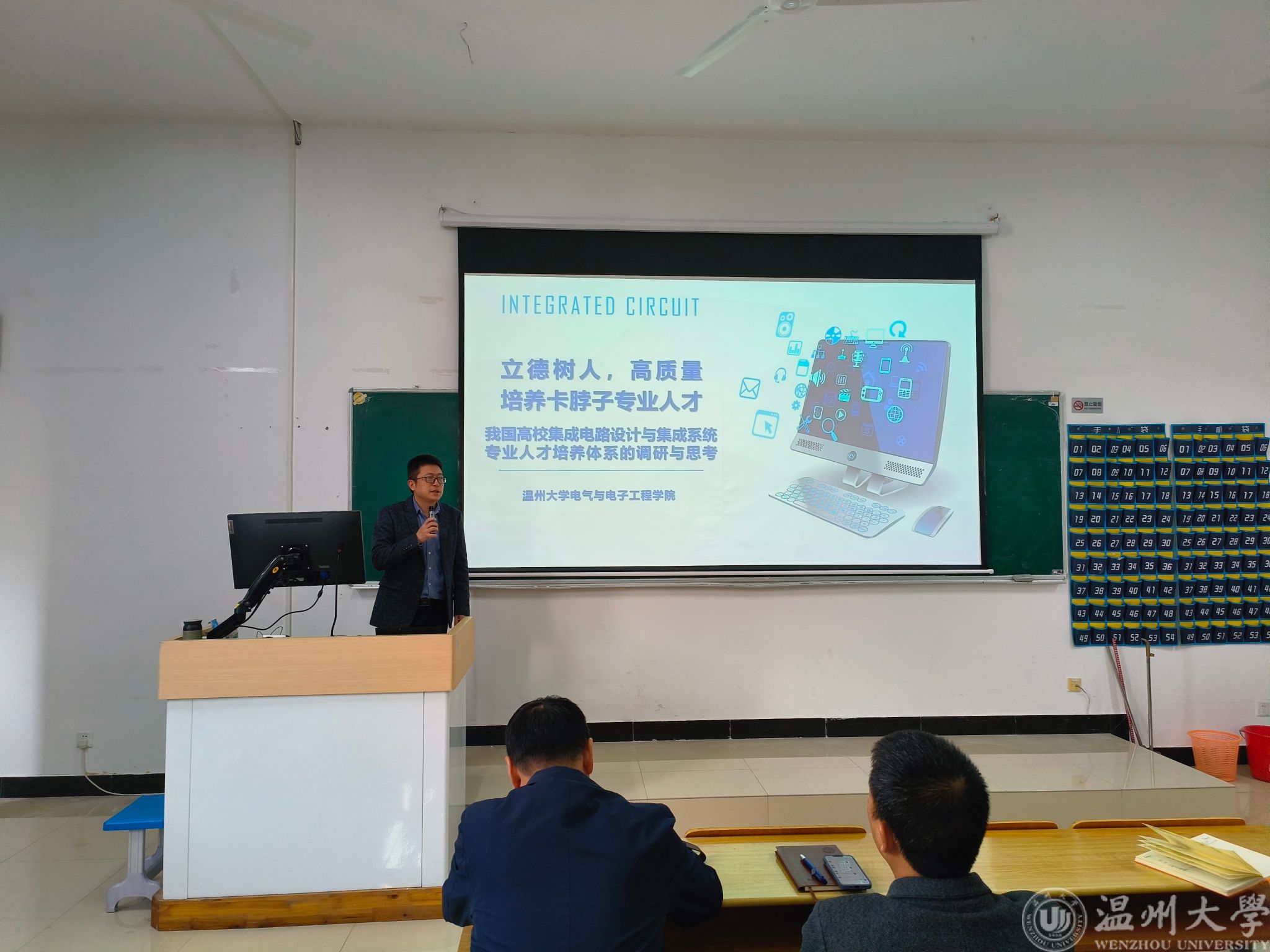 会议开始,由陈博老师进行集成电路专业的调研情况汇报。陈老师主要从我国高校集成电路专业概况、集成电路相关产业发展状况、本次调研对象与调研内容、集成电路培养方案构建思考等几个方面,将“立德树人、高质量培养卡脖子专业人才”的主题内容铺展开来。