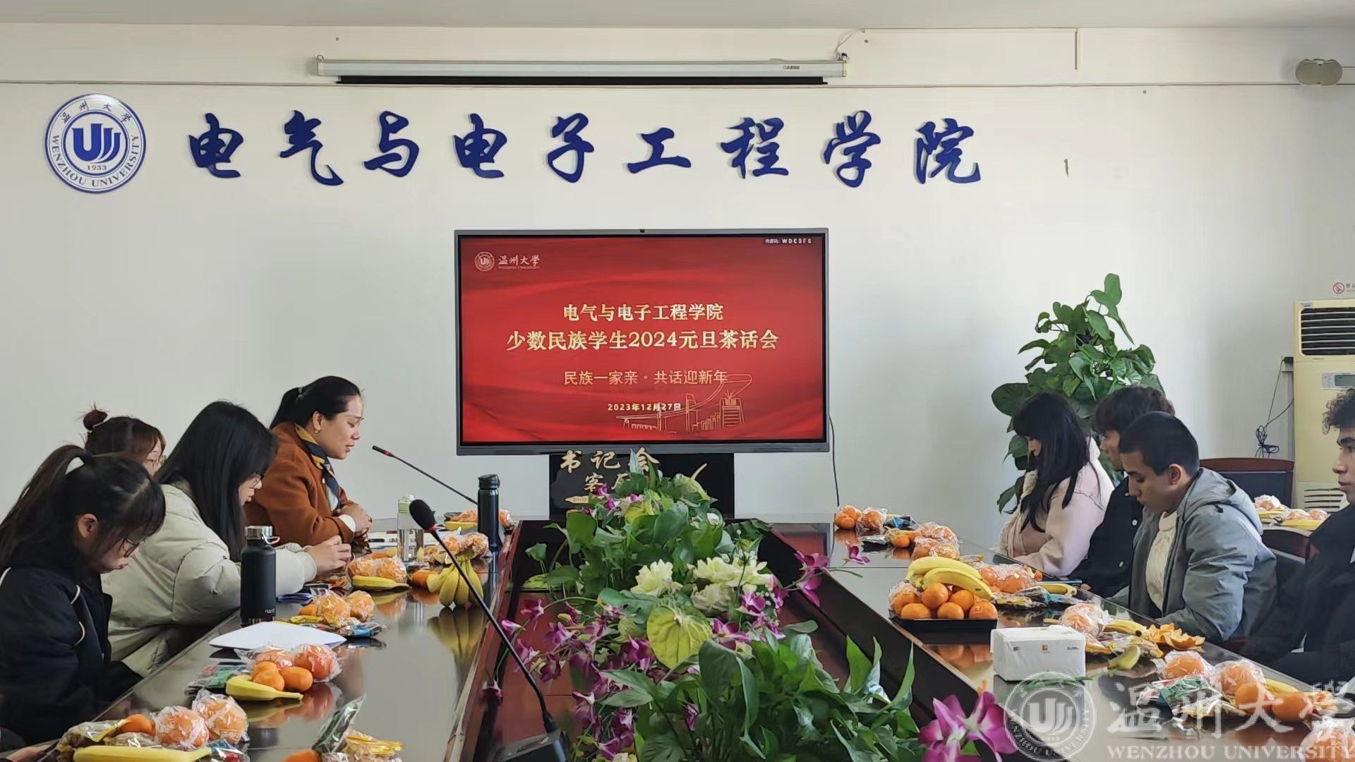元旦将至,为增进各民族学生的交流,弘扬多元民族文化,增强同学们对中华优秀传统文化的认同,12月27日下午14:00,黑料网 幸福充电站之“书记会客厅”在学院1A502如期举行。本期邀请到学院党委副书记曾蓓蕾做客“书记会客厅”,开展“民族一家亲,共话迎新年”元旦茶话会,来自全院17个民族30余名同学欢聚一堂,共同庆元旦、迎新年。