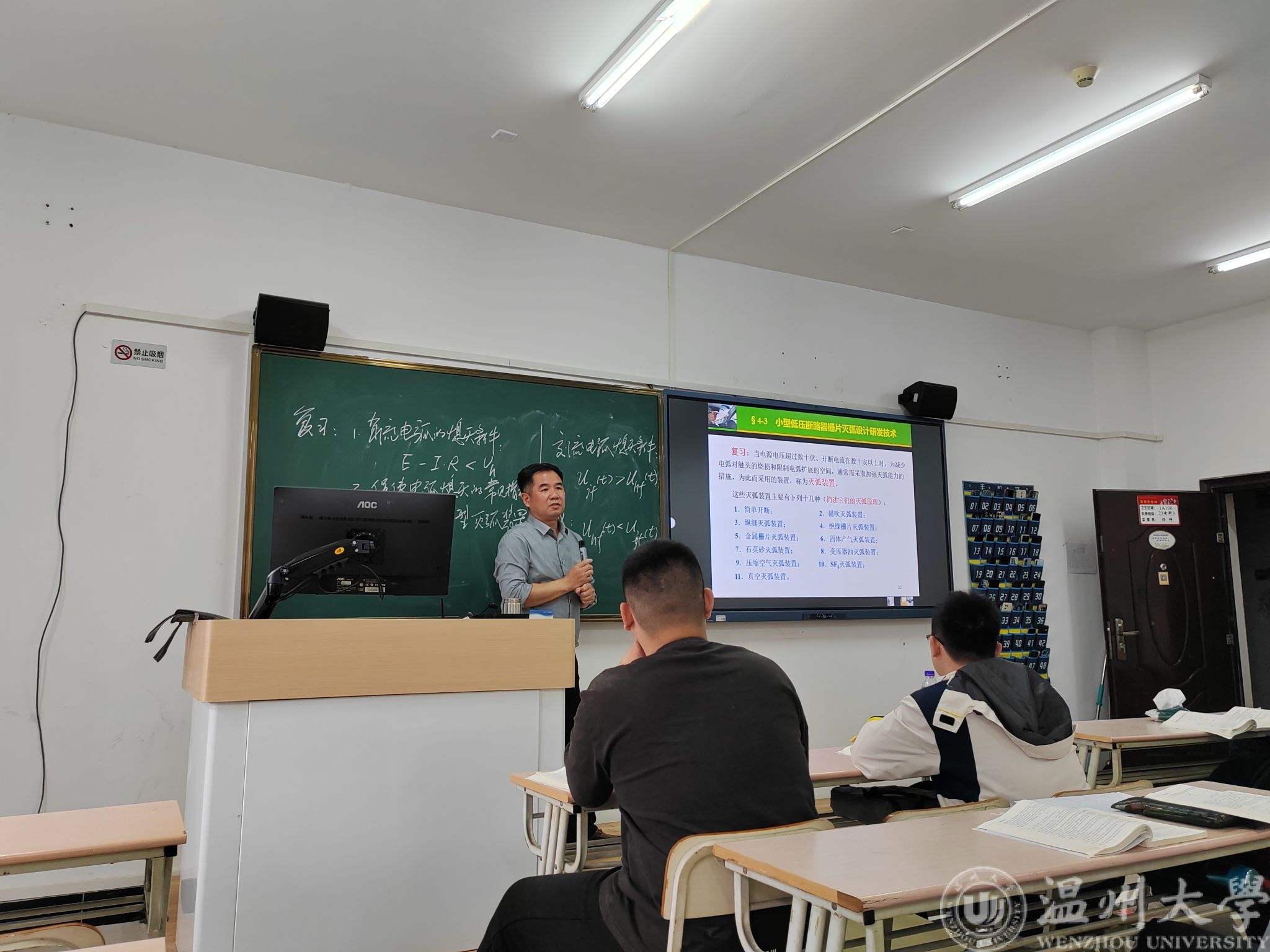 本次公开课中,李靖老师通过精彩的讲解、生动案例分析、师生互动讨论等多种教学方法,让同学们能够全身心地学习和掌握交直流电弧的熄灭原理。课程安排上,李老师精心设计了一系列独特的课程内容板块,涵盖交流电弧熄灭条件和低压断路器栅片灭弧新技术新进展,以独到的视角和深入的剖析,带领大家领略了难以捉摸的电弧知识的奥秘。李老师结合西安交通大学和自己的科研工作,采取静态呈现和动态播放两种方式,分别对断路器灭弧室产气材料理论研究的新进展、电弧磁流体动力学动态仿真与应用、小型断路器操作机构动态仿真等内容进行了展示,充分点燃了大家的学习热情,激发了大家深度思考的能力。课堂上李老师还介绍了自己曾经培养的杨娜同学为我国新基建创新研发的5G基站专用1U断路器的事例,鼓励大家努力学习,提高本领,今后能够为我国社会主义建设事业做出自己的一份贡献。