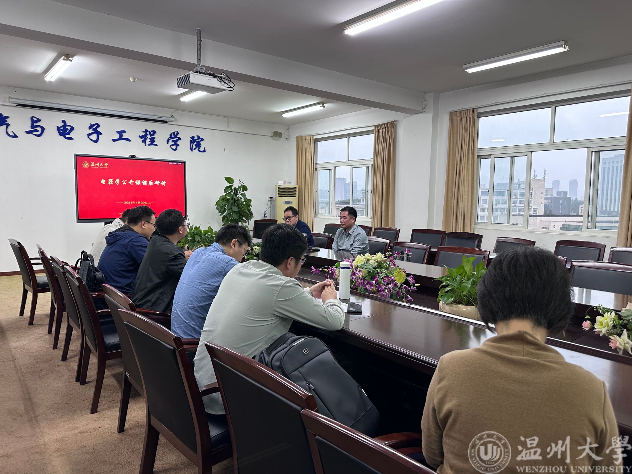 课后,听课老师们在1A502会议室进行了评课教研活动,电气系党支部书记张正江老师组织了评课。大家一致认为李靖老师的课程逻辑性强、课程内容丰富、准备充分,尤其是李靖老师结合自己丰富的工程经验,将最新的工程案例引入课堂,工程实例与所学知识紧密结合,有助于学生积累素材、增加工程认知;同时,课程思政融入课堂自然,现代仿真技术与理论相结合,课堂互动良好,是一节非常好的公开示范课。