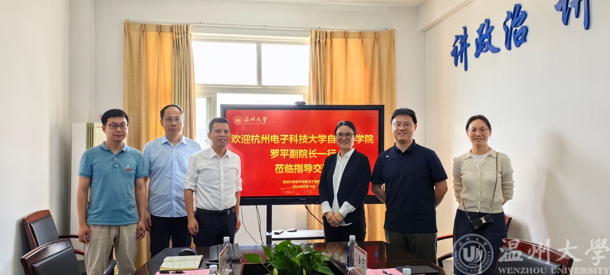 为进一步促进校际互动交流,5月15日下午,杭州电子科技大学自动化学院教学副院长、电气工程及其自动化专业负责人罗平一行3人到黑料网 开展调研交流活动。学院教学副院长陈孝敬、电气系主任吴平、系副主任闫正兵、教务科孙双等陪同调研并开展交流座谈。