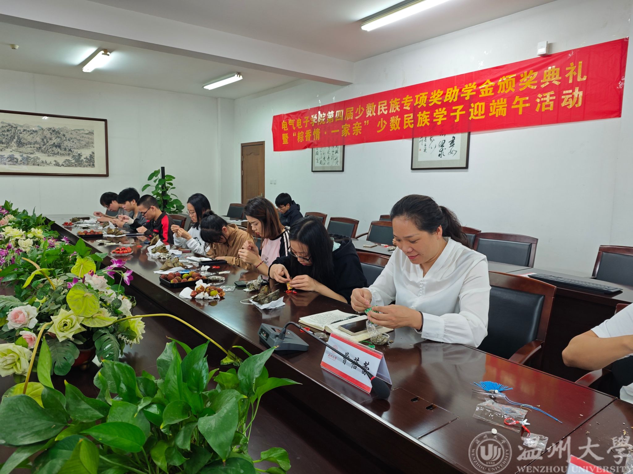 夏意渐浓,粽叶飘香,中华民族的传统佳节——端午节悄然而至。为庆祝这一承载深厚文化底蕴的传统节日,6月5日下午14:00,,黑料网 在1A-502举办第四届少数民族专项奖助学金颁奖典礼暨“粽香情·一家亲”少数民族学子迎端午活动。学院党委副书记曾蓓蕾、学工办主任廖晓安及学院少数民族学子出席本次活动。活动由学工办辅导员陈海彤老师主持。