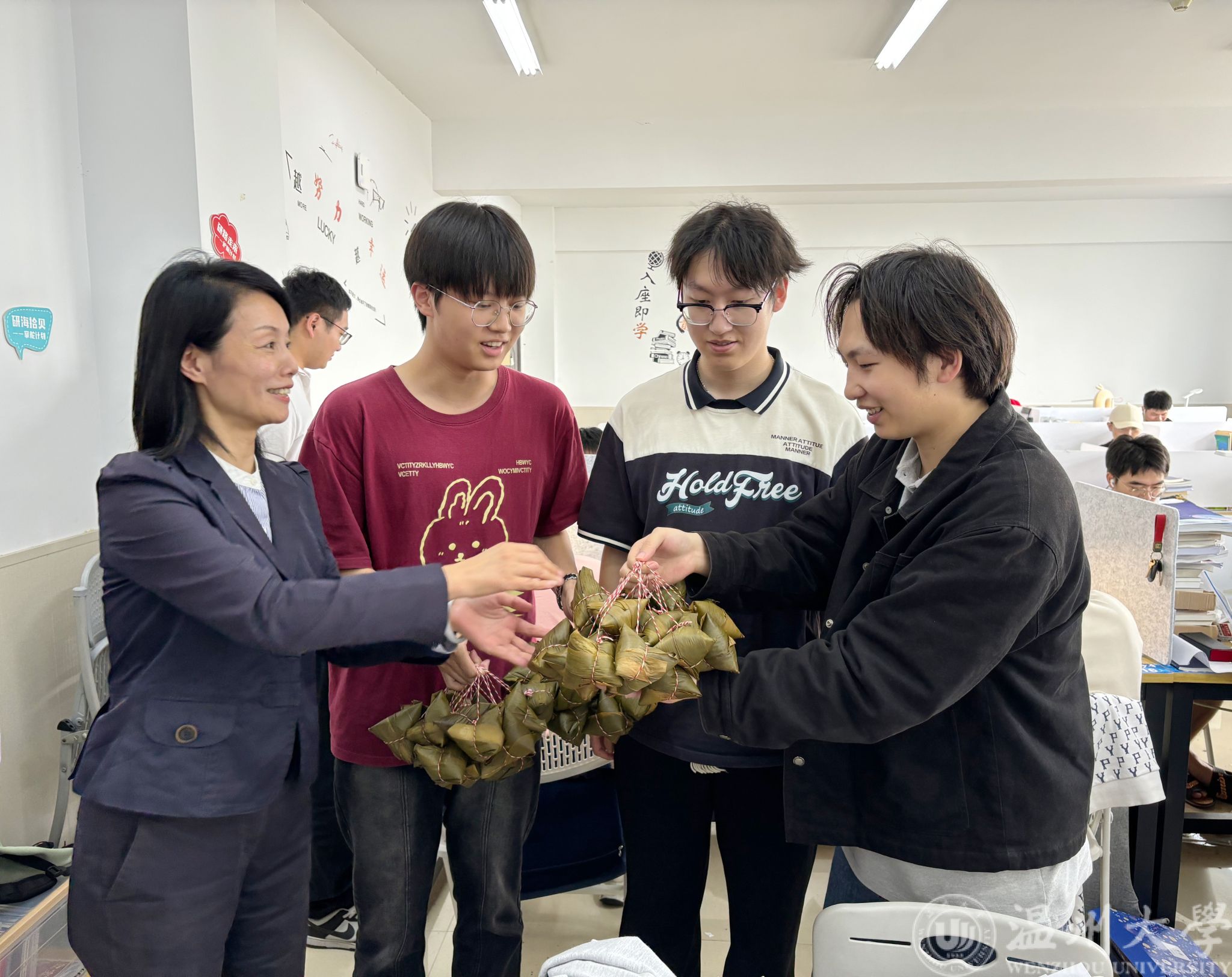 活动当天,各班班主任也深入学生,为学生们分发粽子,并送上节日的祝福。同学们一边品尝着美味的粽子,一边感受着学院浓浓的关爱之情。