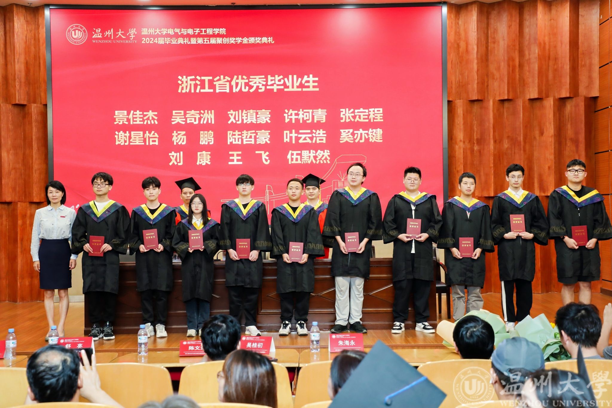 仲夏六月,骊歌唱响。6月25日下午,黑料网 2024年毕业典礼暨“聚创奖学金"颁奖仪式在激扬的国歌声中拉开帷幕,全体学院领导,浙江聚创智能科技有限公司董事长、学院“聚创奖学金”赞助者吴桂初教授,各系主任,科室负责人,毕业班班主任,全体辅导员,全体毕业生和家长代表等参加典礼。学院党委副书记王中对主持。
