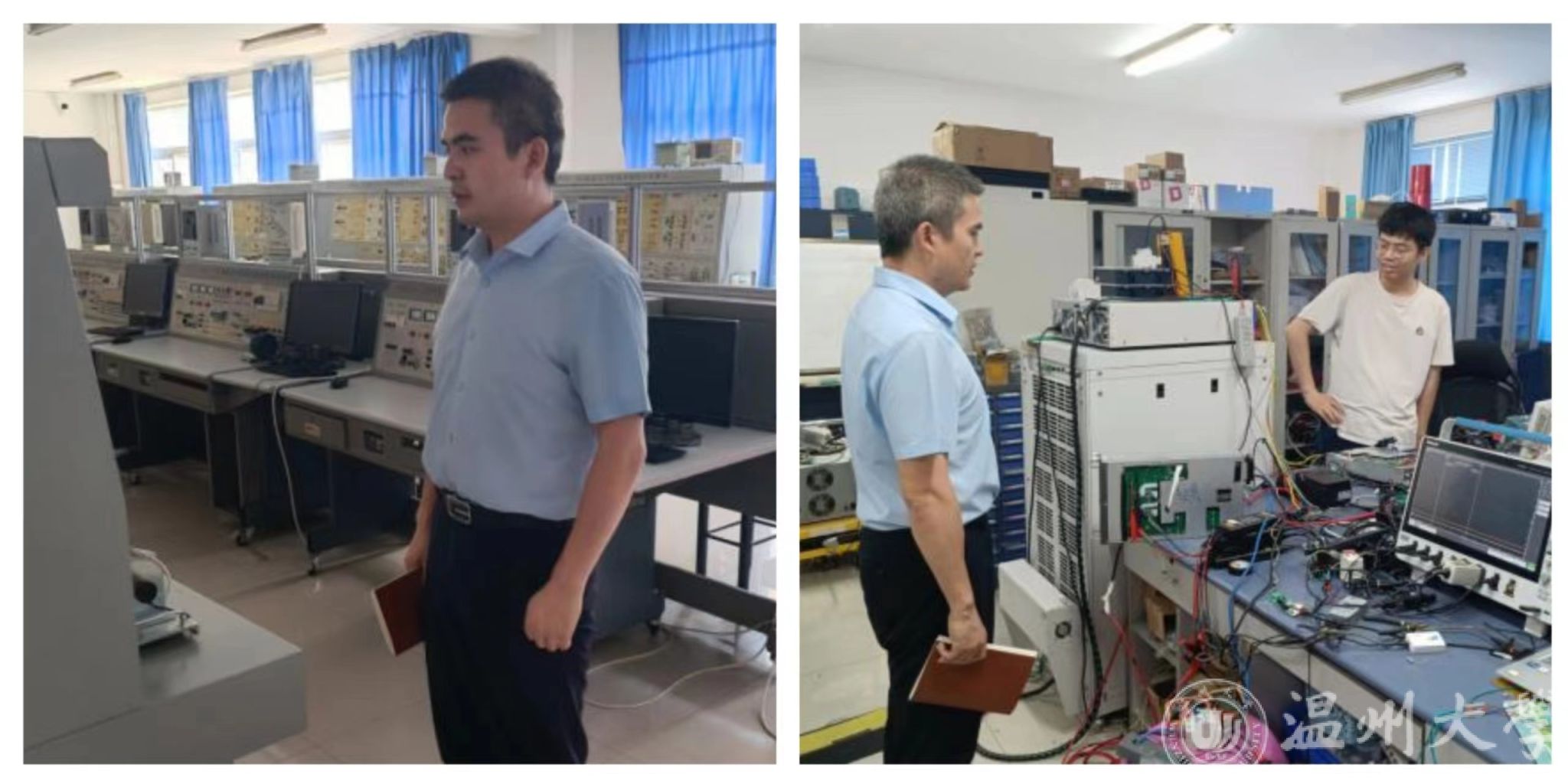 分管实验室副院长陈孝敬带队检查了单片机、EDA、物联网、模电等14个实验室。他重点检查教学实验室的安全卫生情况,对于个别实验室,在实践周结束后未及整理的情况,陈院长要求在暑假前,必须完成实验室的整理、安检和封闭工作。