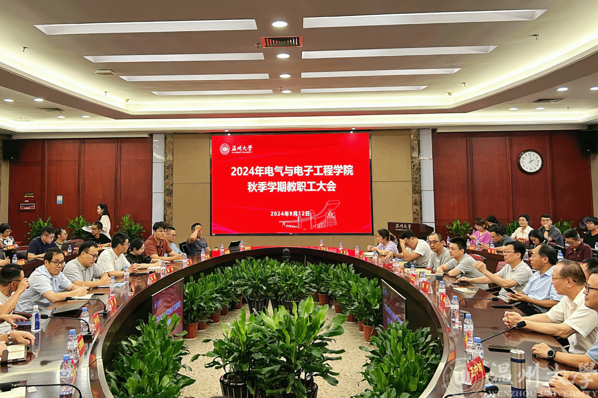 在南校区岩松堂白鹿厅召开2024年秋季学期教职工大会暨政治理论学习会。学院班子成员,全体教职工参加会议。会议由学院党委书记陈文远主持。