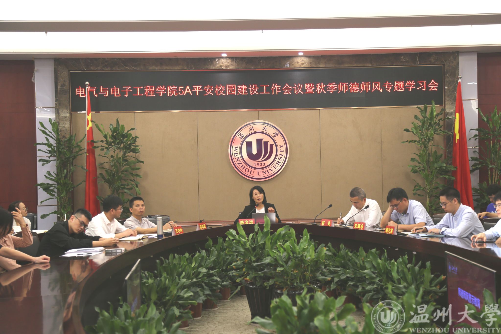 学院党委党委书记陈文远组织教职工政治理论学习和师德专题教育。她领学了习近平同志《论教育》,传达了浙江省委十五届五次全会、温州市委十三届六次全会会议精神,她强调,要把习近平同志《论教育》列入学习计划,读原著学原文、悟原理知原义,形成体系式深入学习的浓郁氛围,更加坚定用习近平新时代中国特色社会主义思想武装头脑,指导学院改革发展实践,用实践收获检验学习成效。她通报了违反高校教师职业行为十项准则典型案例,希望学院全体教职工以案为鉴,时刻保持警醒,明确行为规范,坚守行为底线,做到警钟长鸣。