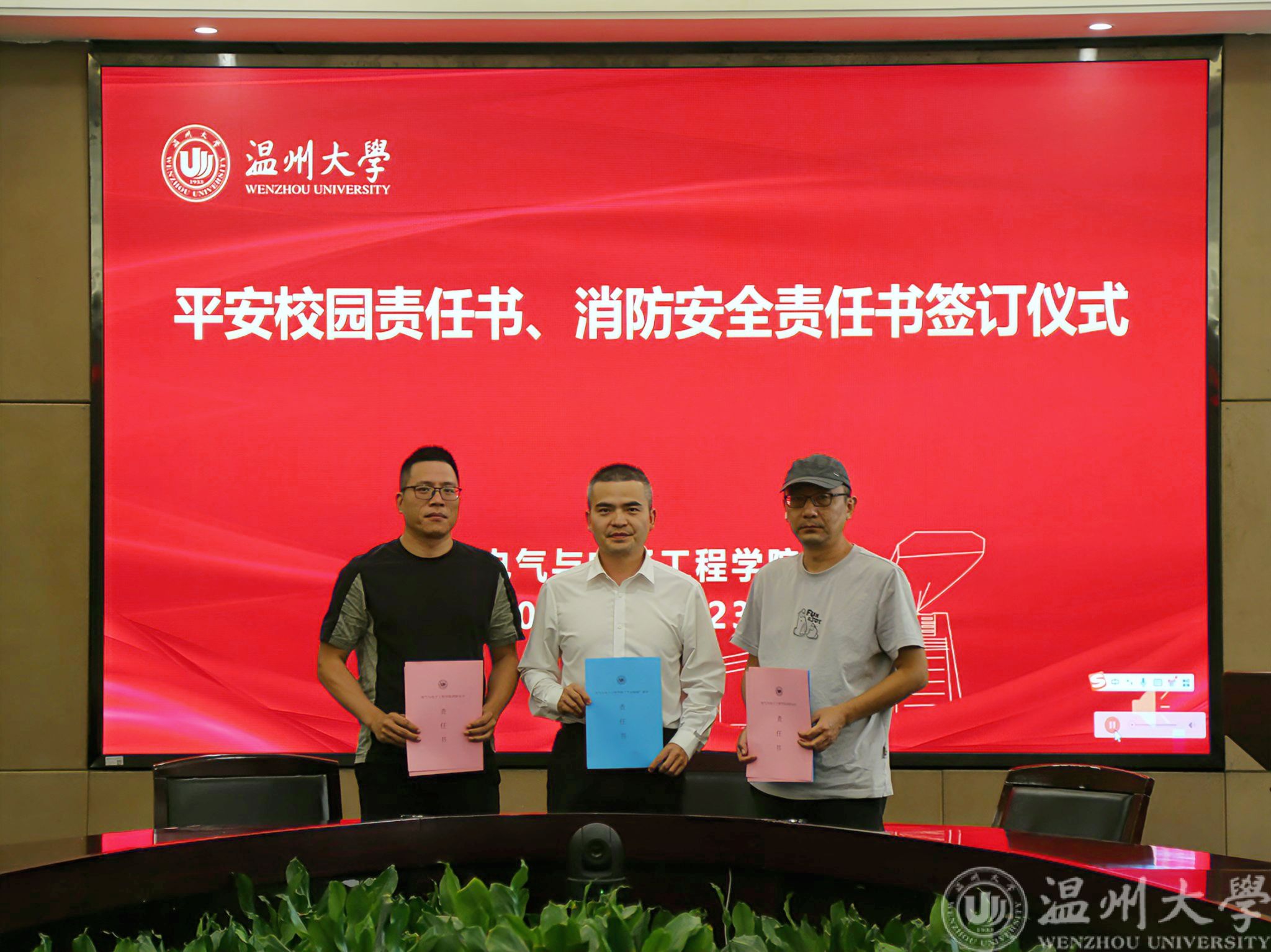 学院党委副书记、纪委书记王中对解读《黑料网 争创5A等级平安校园建设工作方案》,领学《等级平安校园考评应知应会》内容,并对学校争创5A等级平安校园建设工作进行部署。学工办与实验中心负责人作为学院内设机构代表与学院签订了“平安校园”建设责任书、消防安全责任书。全体教职工共同签订了反诈责任书。