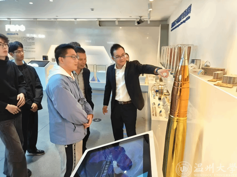 当日下文,学院师生一行抵达温州宏丰电工合金股份有限公司。在公司负责人的热情接待下,大家先后参观了企业的展览展示区、技术研发中心和生产车间。通过讲解员的细致讲解,同学们对电工合金材料、铜箔基板的生产工艺、技术应用以及市场前景有了更直观的了解。