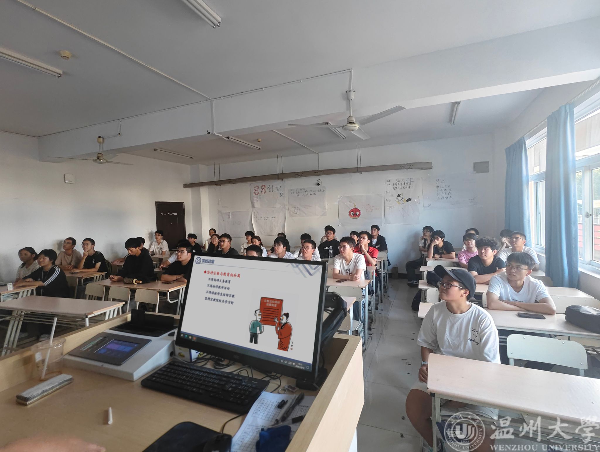 班会上,老师和同学们的发言,不仅让同学们学会区分了宗教和邪教的区别,更重要的是,引导学生们认识了宗教的相关政策。我国施行的是与社会主义社会相匹配的宗教政策。同学们也认识到了大学里是教育为上,应当保证教育的纯洁性和独立性。