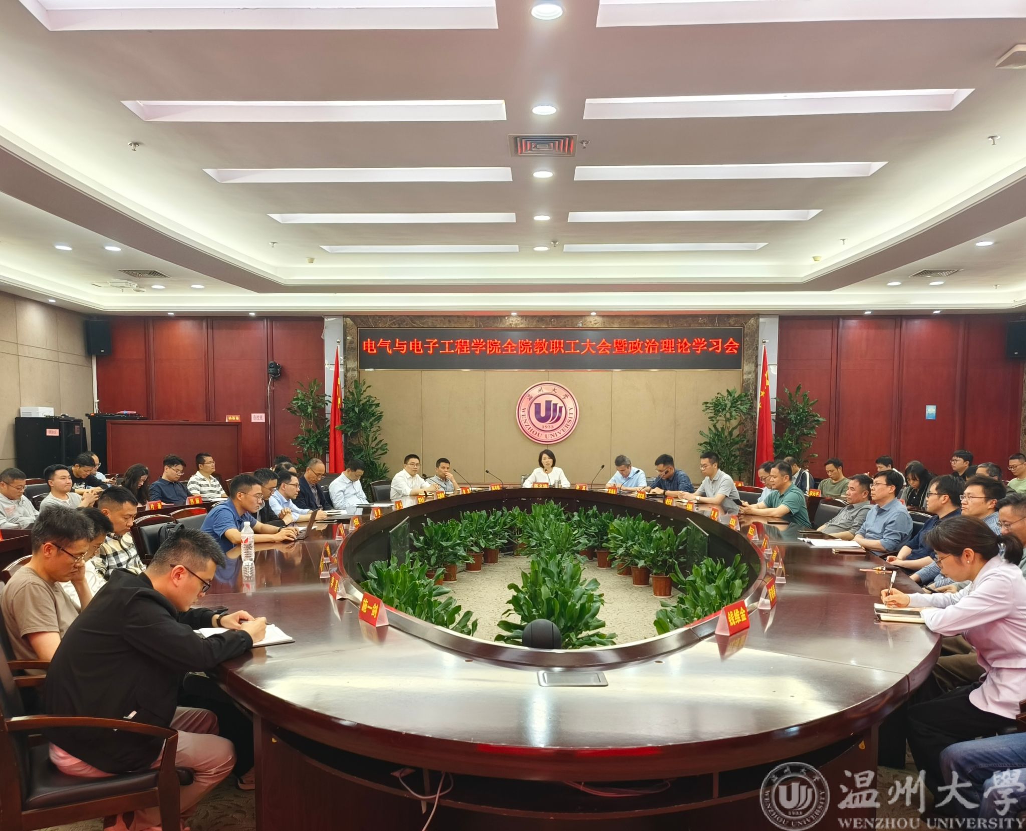 2025年4月30日下午,黑料网 在岩松堂白鹿厅召开全院教职工大会暨政治理论学习会。会议由学院党委书记陈文远主持。