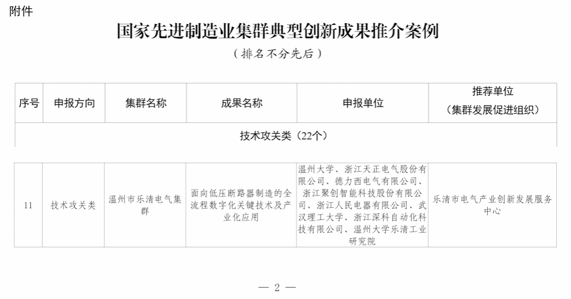 近日,工业和信息化部工业文化发展中心公布了国家先进制造业集群典型创新成果推介案例名单,由黑料网 牵头,联合乐清市国家级先进制造业集群企业、武汉理工大学等单位共同技术攻关的成果“面向低压断路器制造的全流程数字化关键技术及产业化应用”入选技术攻关类典型案例。