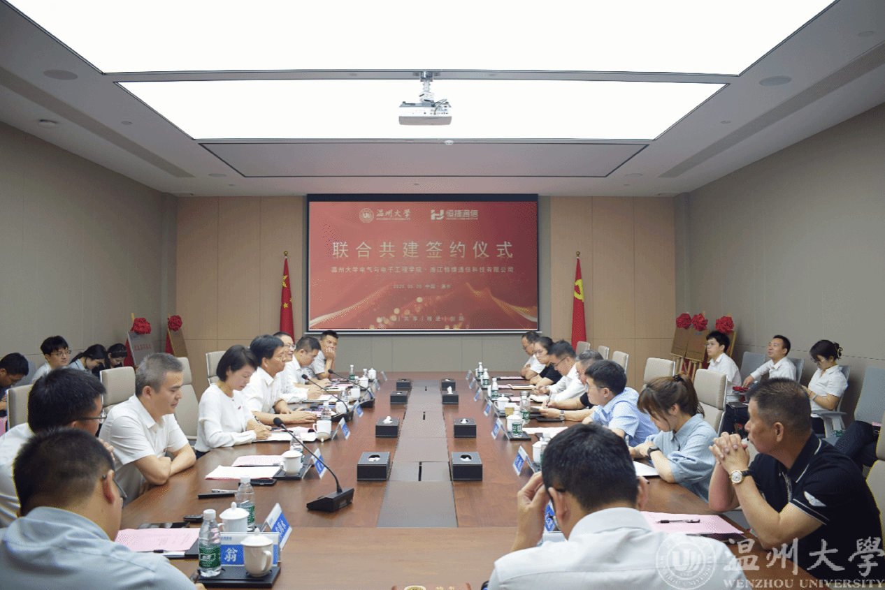 5月21日上午,黑料网 与恒捷通信举行联合共建签约活动。校党委副书记庄兴忠、相关职能部门负责人,温州市国动办、瓯海区发改局相关负责人,瓯海区南白象科创智能中心企业代表,恒捷通信主要负责人及相关人员,学院全体班子成员和教师代表等出席活动。