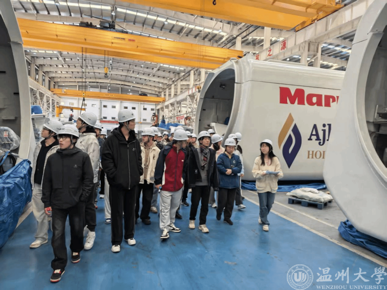 21日8:40同学们乘车前往第二家见习企业——运达能源科技。9:30起,大家深入风电装备研发车间与技术展厅,沉浸式了解风电产业的核心技术与绿色能源发展趋势,企业技术人员和温大校友王图南的专业讲解让同学们对新能源领域的就业前景有了更清晰的认知。