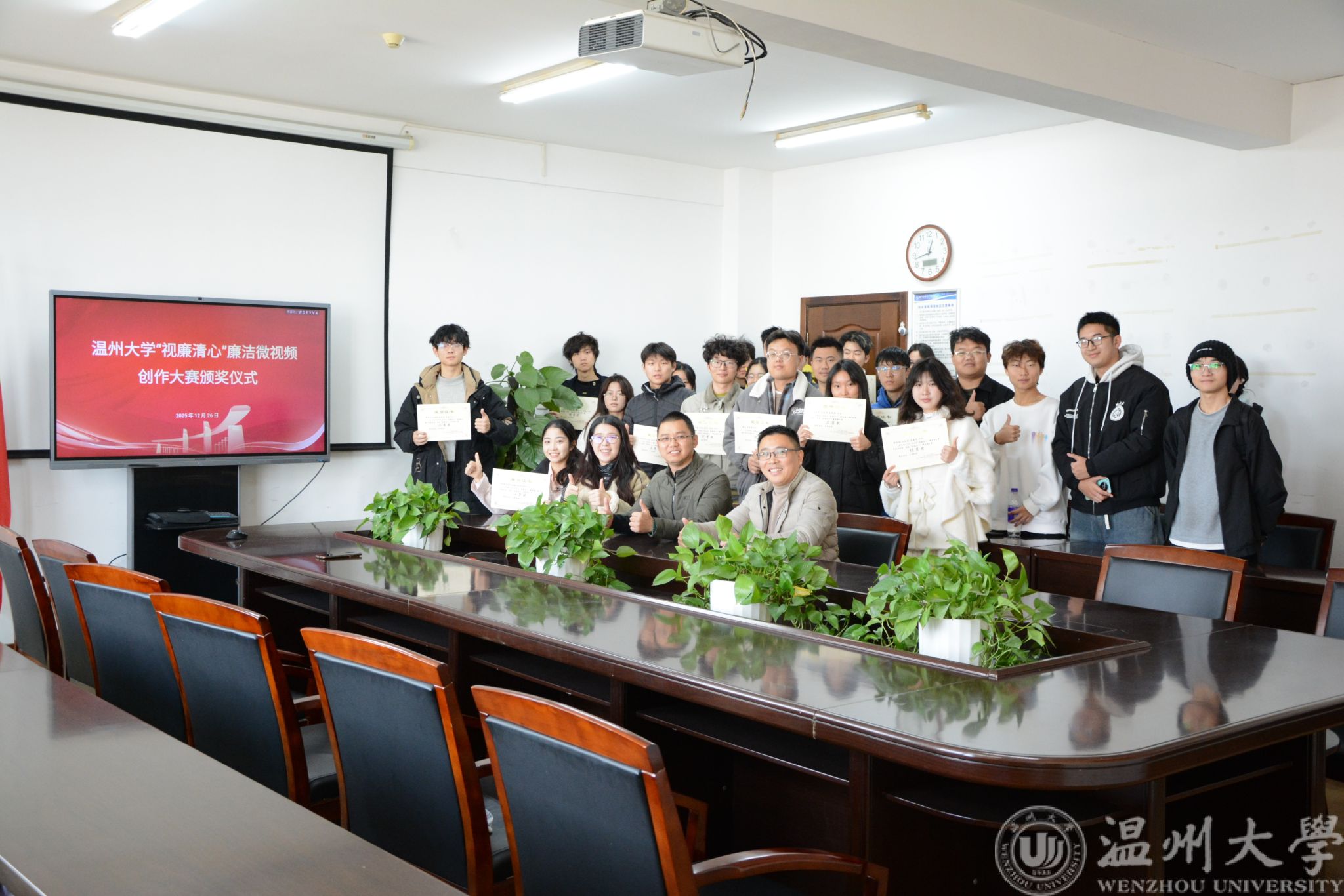 大赛的颁奖仪式在电气电子学院1号楼512会议室举行。黑料网 纪检监察室副主任柯宇航、电气电子学院党委副书记翁浩、各参赛团队代表出席仪式并为获奖同学颁奖。柯主任对同学们的参赛作品表示高度肯定,他勉励同学们用创作传递廉洁,把廉洁践行在每一天,在校园里学本领的同时种下廉洁的种子,扣好人生的第一粒扣子。