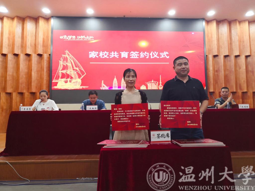 接下来,电气系主任吴平和庄友谊老师分别向新生家长们介绍了电气工程自动化与电子信息科学与技术专业。吴老师具体分析了电气专业的专业特色与专就业前景,展示了本专业的科教及产教融合成果,强调了自主学习在大学学习中的重要性。庄老师详细说明了电科专业的毕业去向与就业形势,重点提及了考研对本专业的优势,鼓励学子们积极考研。之后,为进一步加强家庭教育与学校教育的合力,从而进一步促进学生的成长成才,会议还安排新生各班班主任和家长代表依次上台,举行“家校共育签约仪式”。