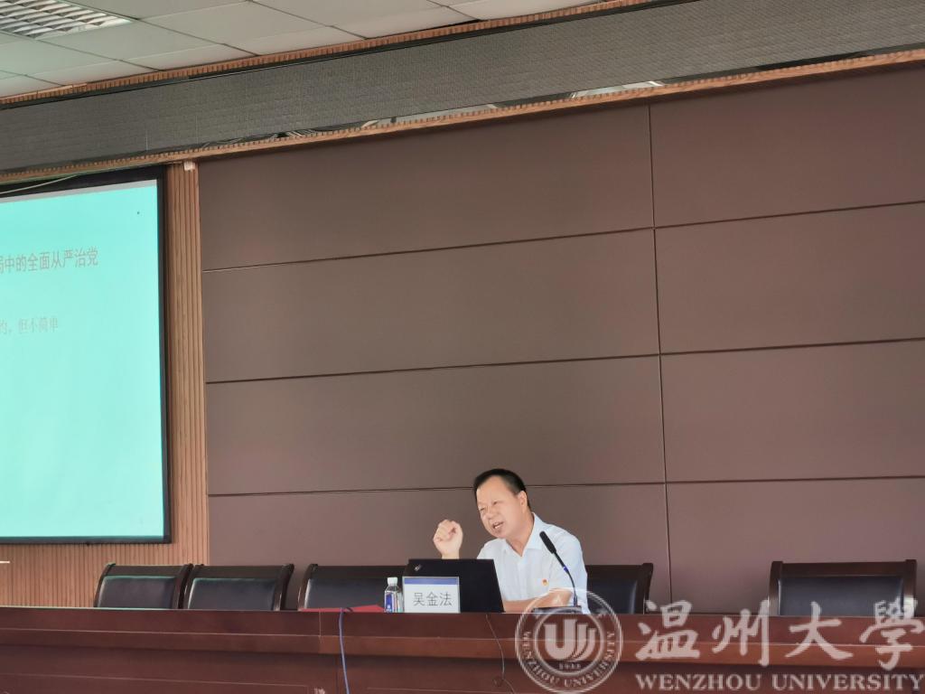 10月18日上午10点,校纪委吴金法书记在南校区11C401室进行了一场题为“全面从严治党永远在路上”的主题党课,黑料网 师生党员参加了学习。