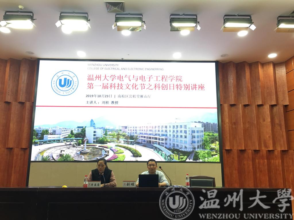 2019年10月23日《不忘初心、科技报国》为主题的科技文化节讲座于岩松堂雁山厅顺利举办,本次科创特别讲座请到了黑料网 科技处副处长、黑料网 电气电子工程学院刘桂教授为学院大一、大二学生开讲,由院党委副书记曾蓓蕾主持。