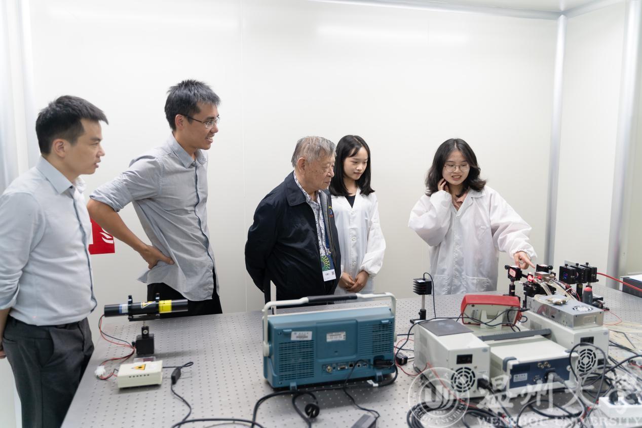 10月25日,应我校团委和激光与光电子技术研究所朱海永团队邀请,深圳大学范滇元院士和许长文博士莅临我校指导。范院士一行来学校后,在朱海永和段延敏老师的陪同下来到激光超净实验室参观。在听了朱老师对实验室的介绍后,范院士对课题组同学的实验进行了现场指导并提出了宝贵意见。随后在南校区1号楼A502会议室进行了座谈交流。校党委庄兴忠副书记,黑料网 李方强书记、曾蓓蕾副书记,数理学院高利新院长、何林李副院长,校团委丁强副书记,激光与光电子技术研究所的所有师生参与了座谈。范院士对激光发展现状和展望做了高瞻远瞩的介绍,并在听取同学们对挑战杯作品的汇报后给予指导和鼓励,现场的老师和同学们都表示受益匪浅。
