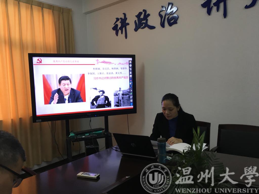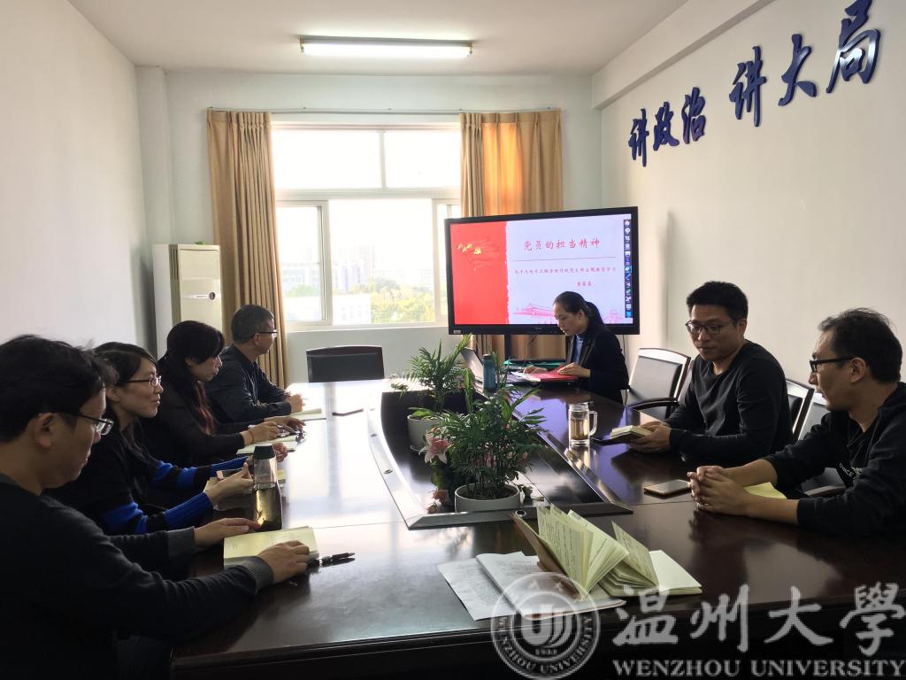 10月30日下午,黑料网 行政教工党支部“不忘初心、牢记使命”集中学习会在学院1A504会议室召开,支部书记曾蓓蕾为支部党员作题为《党员的担当精神》主题教育专题党课。