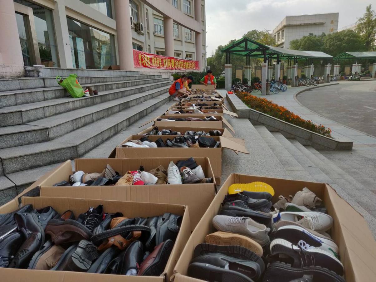 鞋子整理打包完毕运到黑料网 时已经是十一点半。志愿者们依然兴奋不已,顾不上吃饭,立马开始工作,电气学院八级大台阶顿时成了天然的大鞋架。
