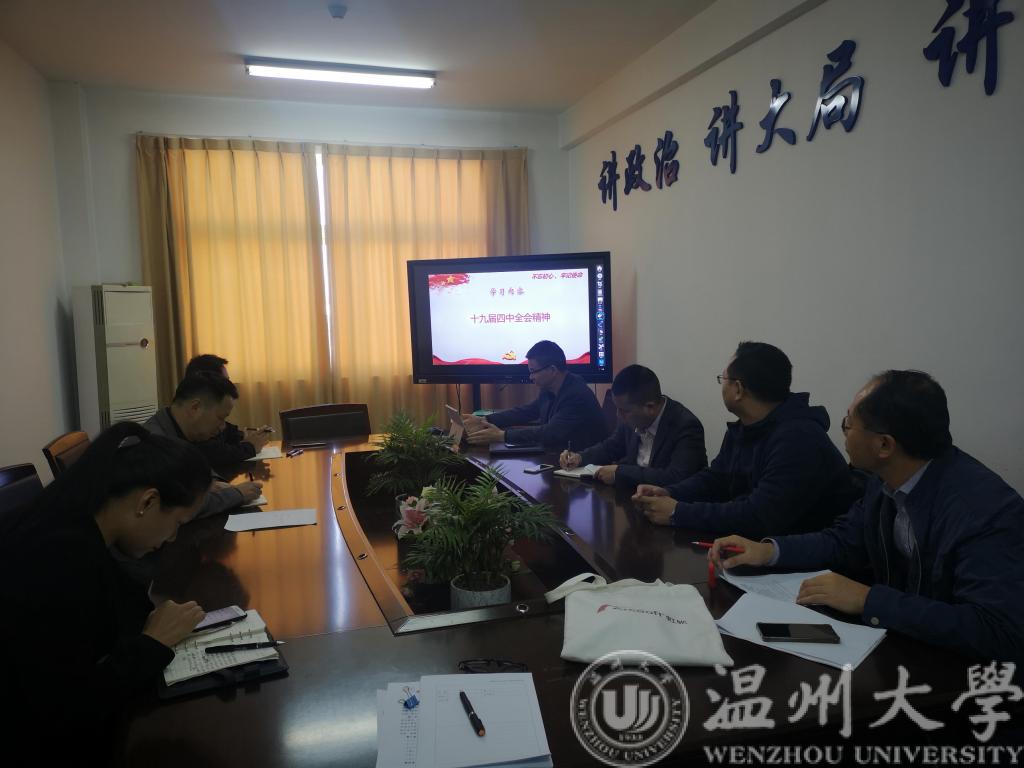 11月15日上午,黑料网 党委理论中心组在1A594召开本学期第四次学习会,学院全体班子成员和党委委员参加了学习会议。学习会由学院党委书记李方强主持。本次学习会集中学习党的十九届四中全会精神。