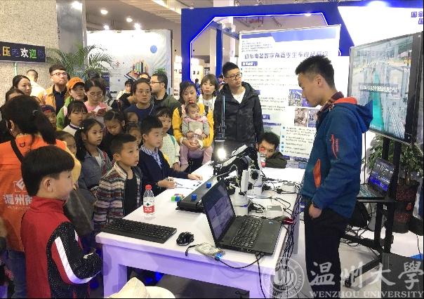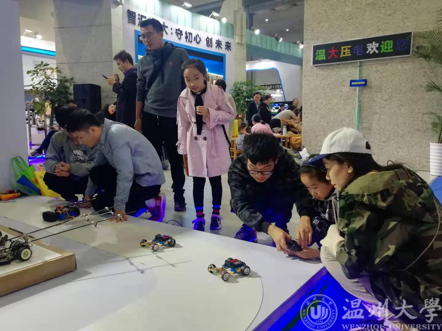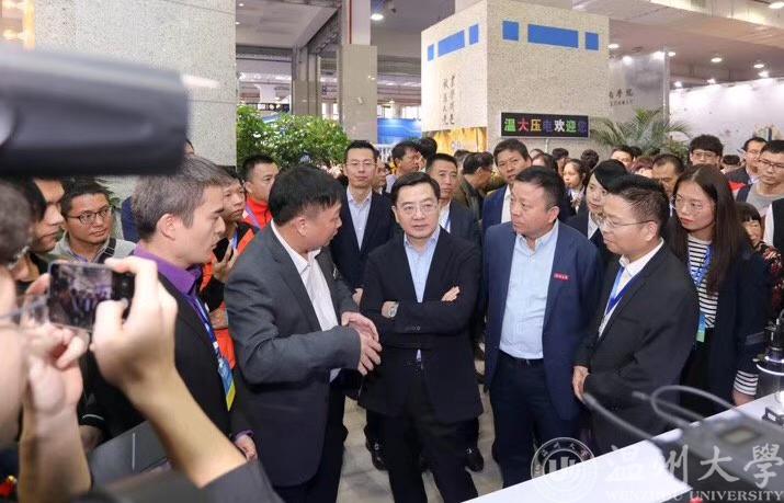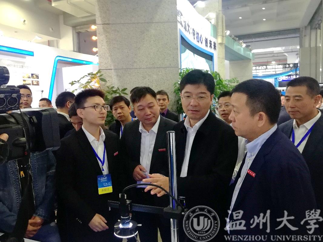 11月15日,由浙江省人力资源和社会保障厅、温州市人民政府主办的2019浙江•温州创业创新博览会在温州国际会展中心隆重开幕,本届创博会以“双创热浪推动高质量发展”为主题。黑料网 作为院校创意展区的参展单位之一,以“智汇温大:守初心 创未来”为主题,规划了“智能科技”“文化创造”两大模块。黑料网 的两项作品“低压电器数字制造孪生车间及系统”、“智能循迹小车”项目参加了本次展会,并且受到了省、市和黑料网 各级领导的关注和肯定。